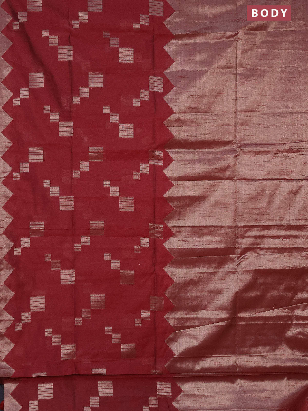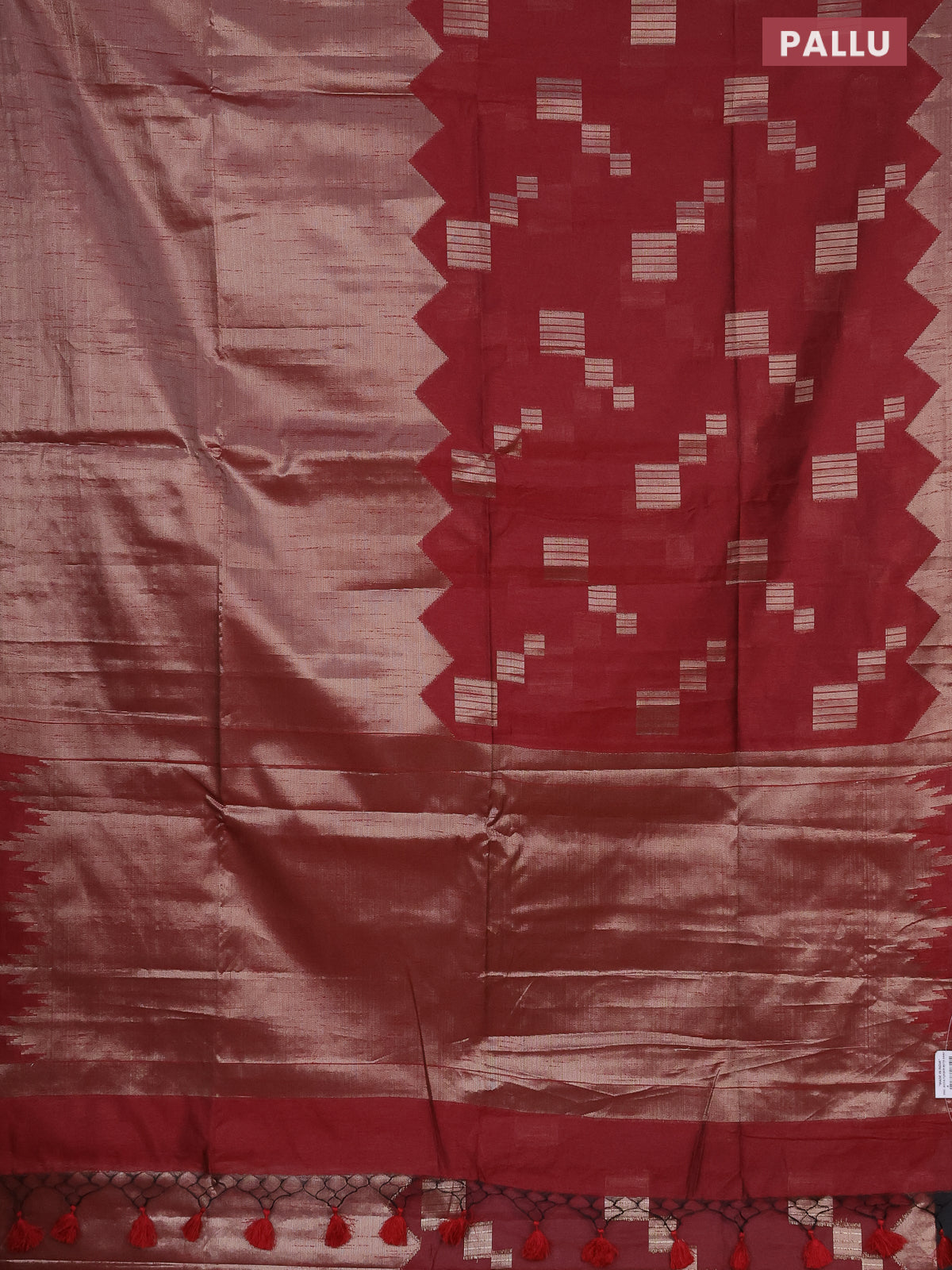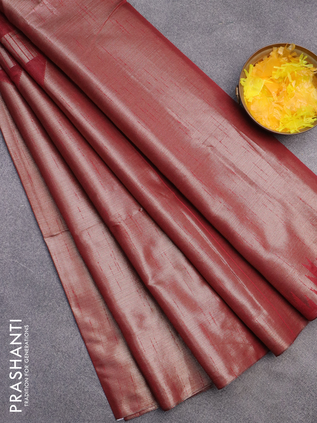 Banarasi matka tissue saree maroon with plain body and temple design zari woven border