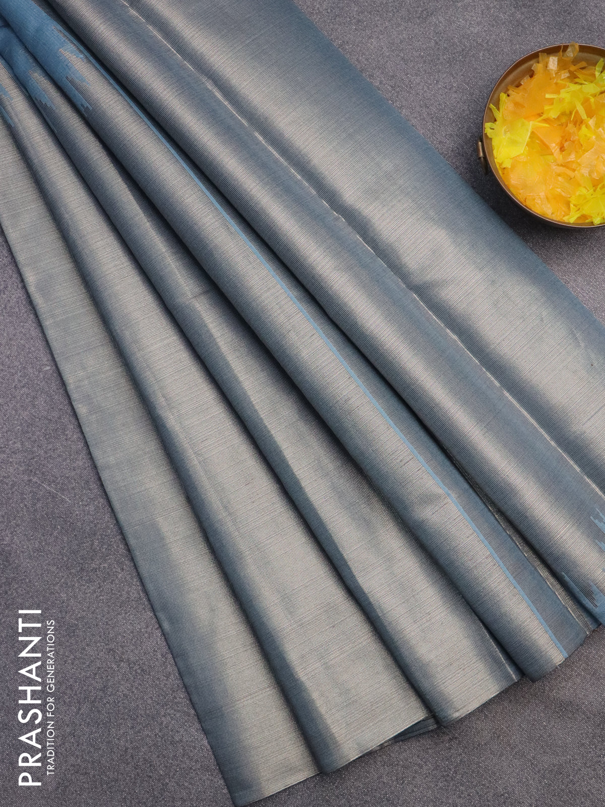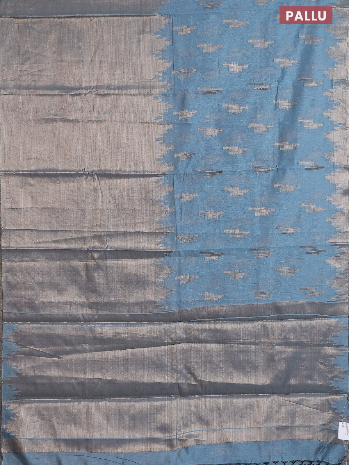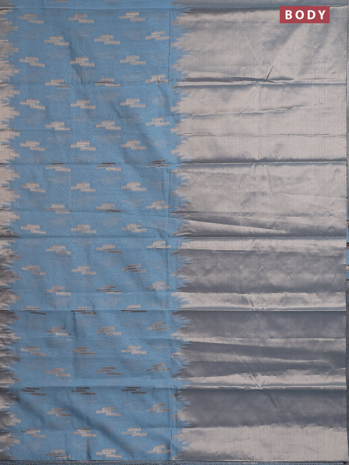 Banarasi matka tissue saree pastel blue with allover zari woven buttas and temple design long zari woven border