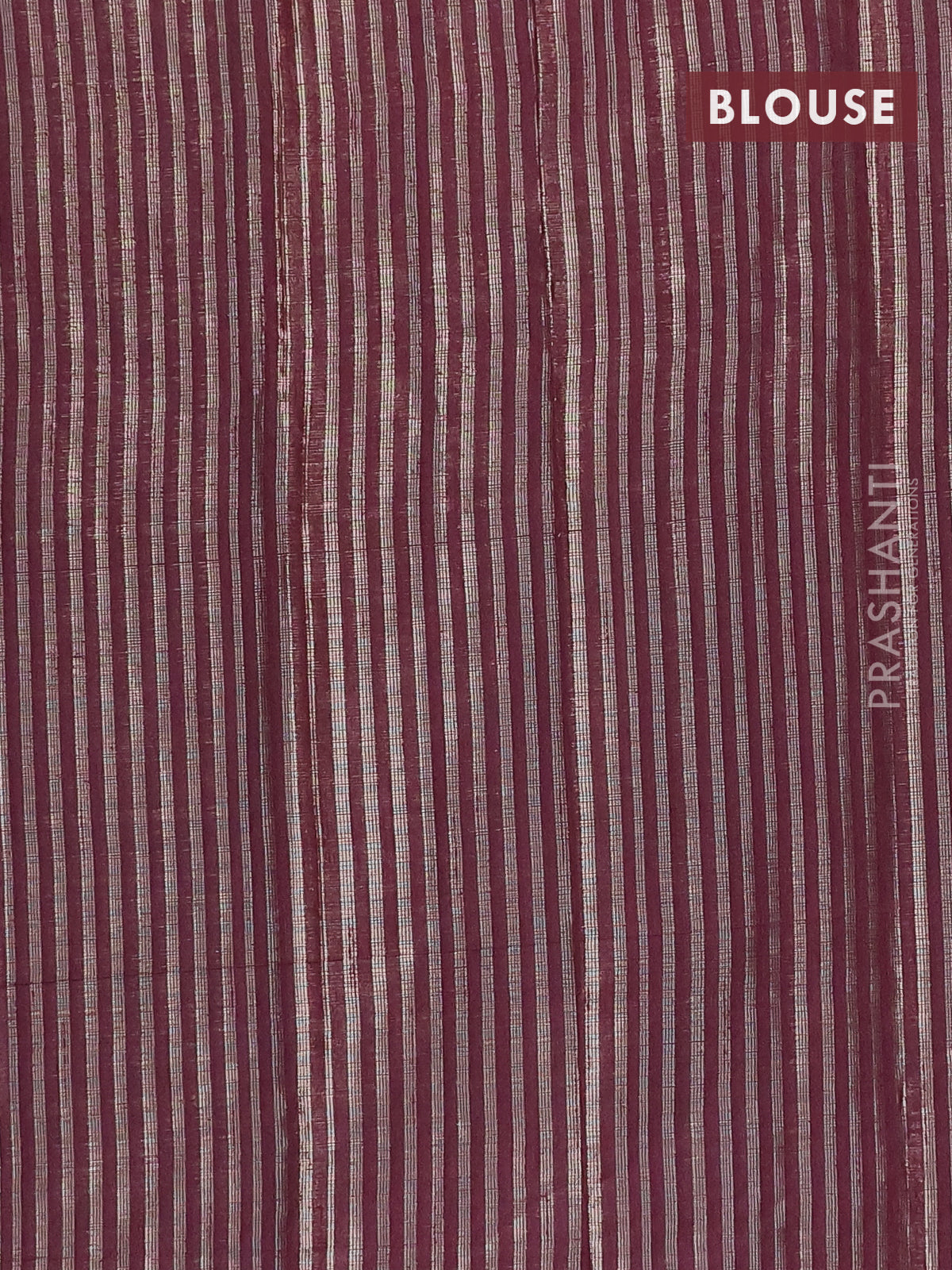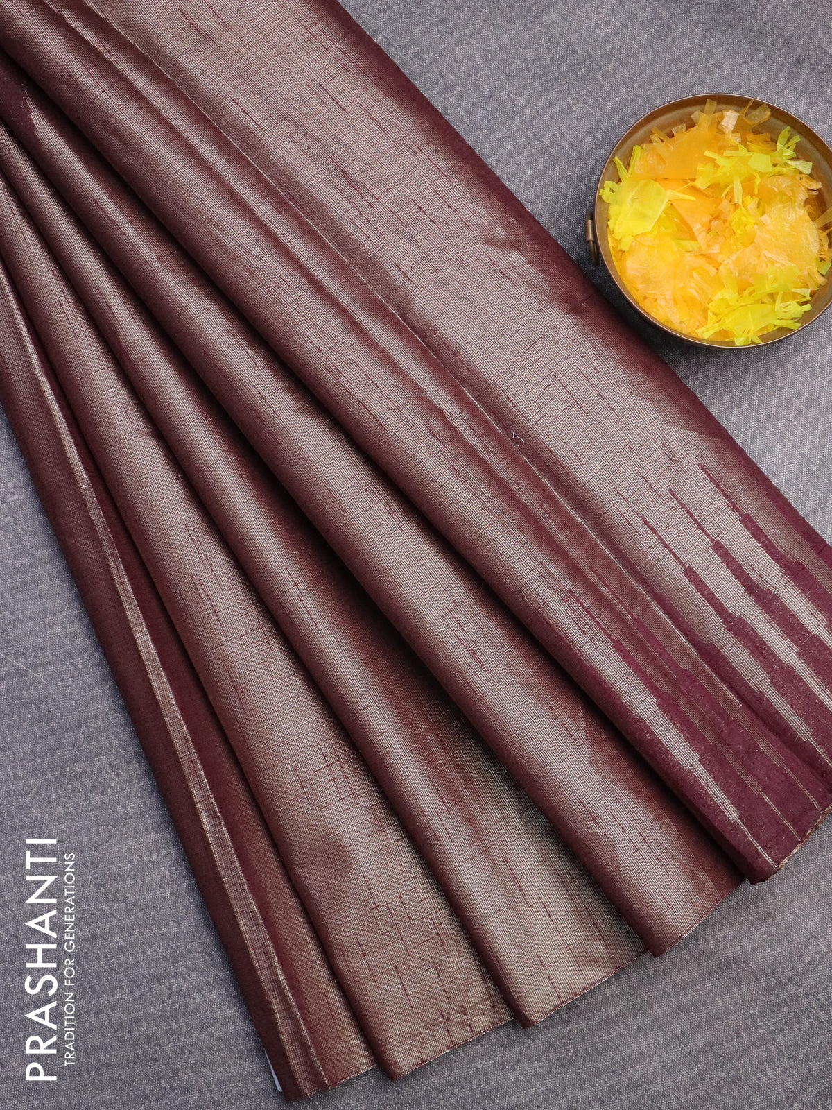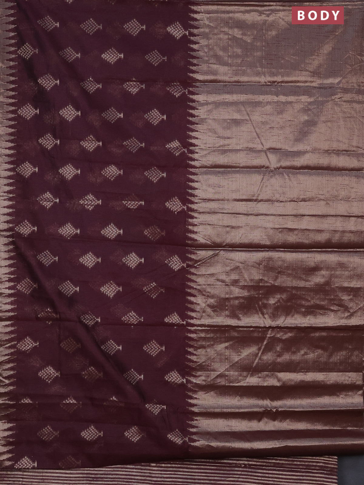 Banarasi matka tissue saree wine shade with thread & zari woven buttas and long temple design zari woven border