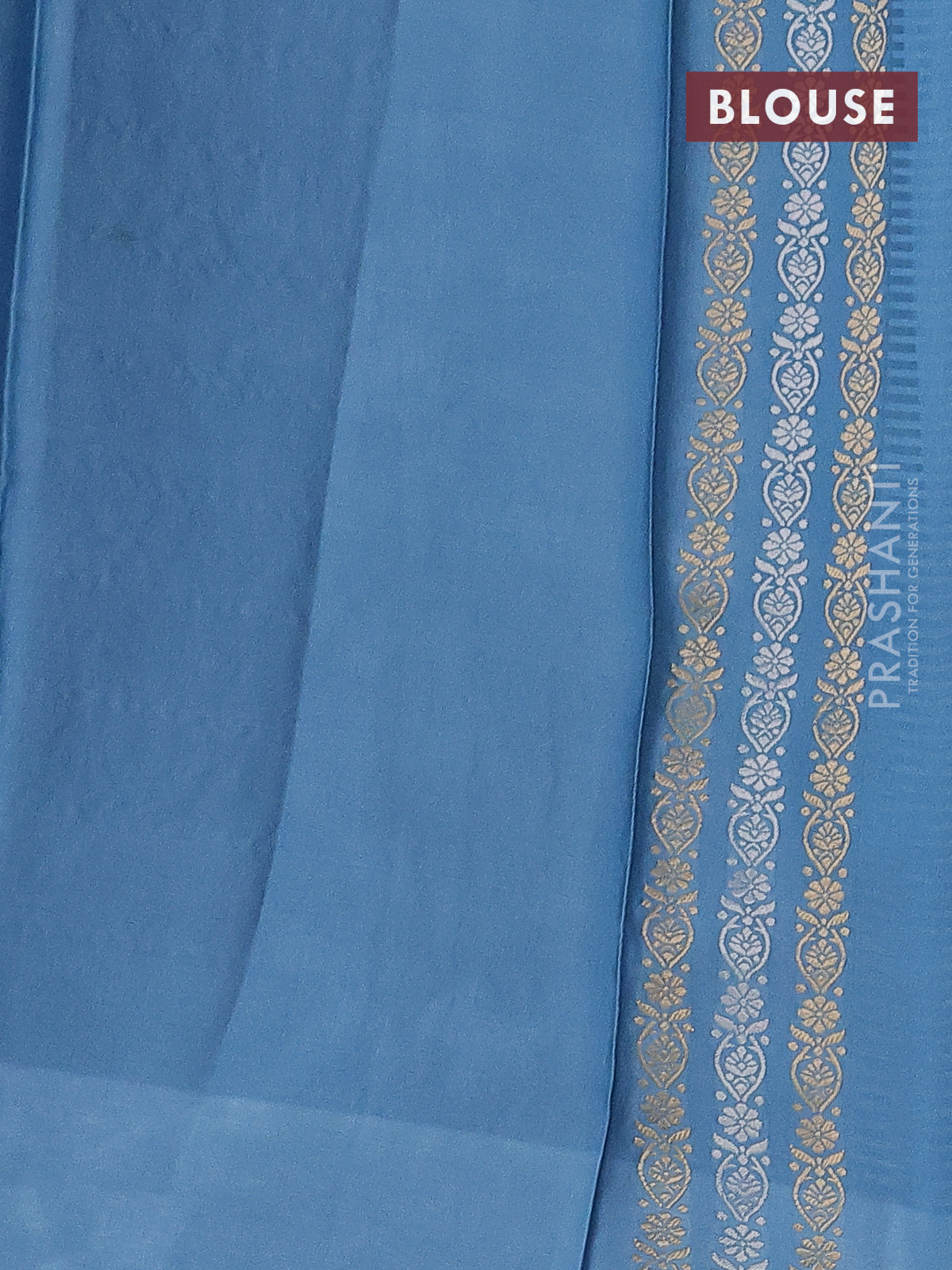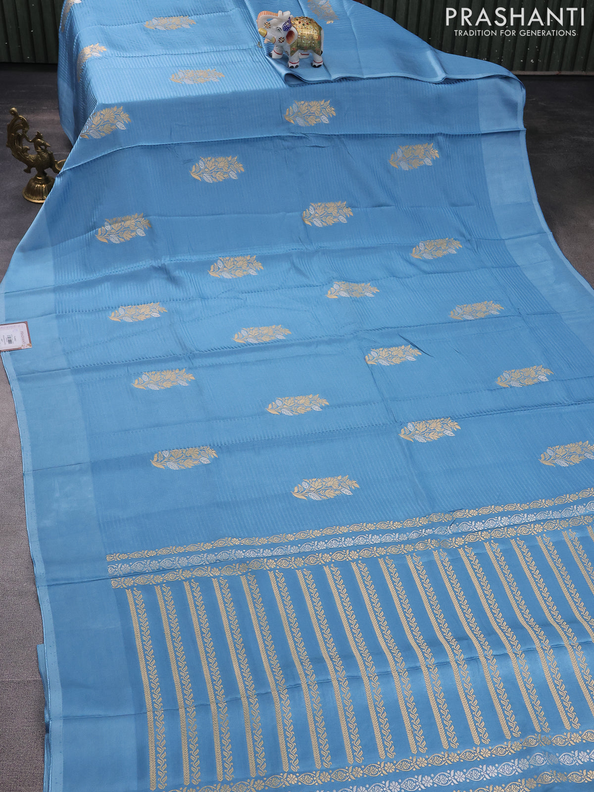Banarasi mushru silk saree light blue with allover stripes pattern & zari weaves and satin border
