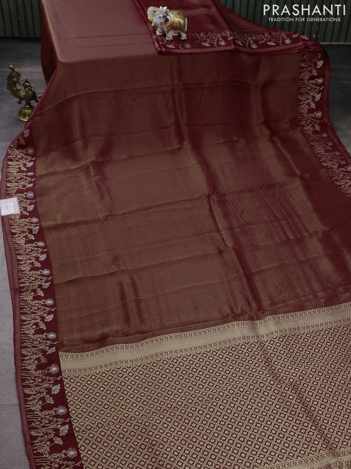 Banarasi mushru silk saree maroon with allover zari weaves and zari woven border