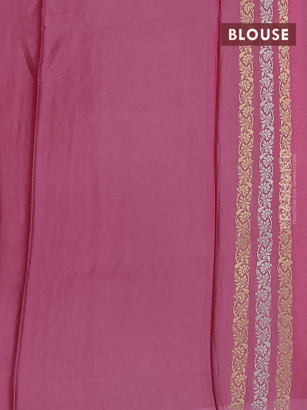 Banarasi mushru silk saree pastel pink with allover stripes pattern & zari buttas and satin border