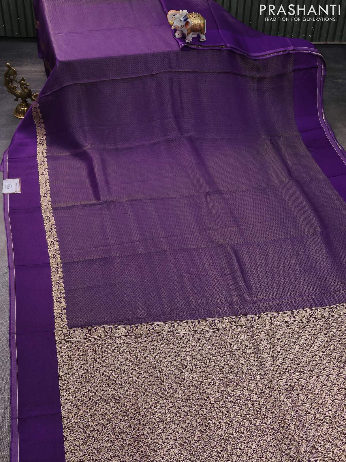 Banarasi mushru silk saree violet with allover zari weaves and zari woven border