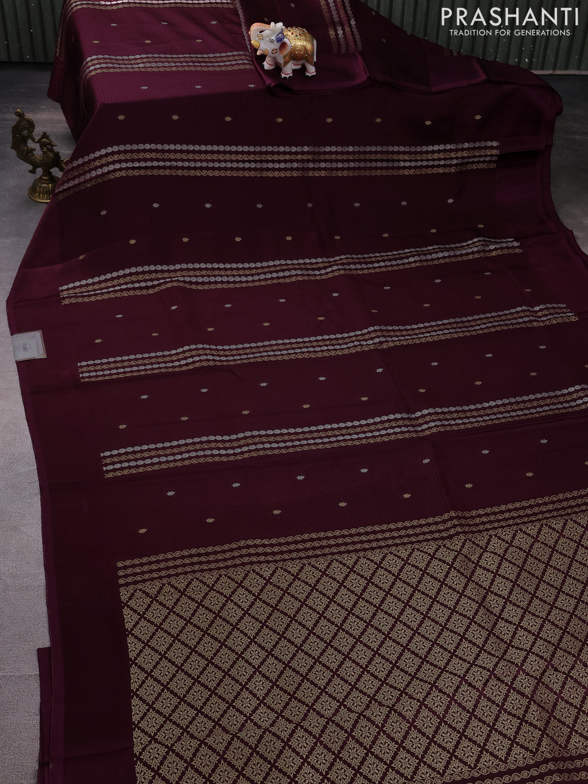 Banarasi mushru silk saree wine shade with allover stripes pattern & zari weaves and satin border