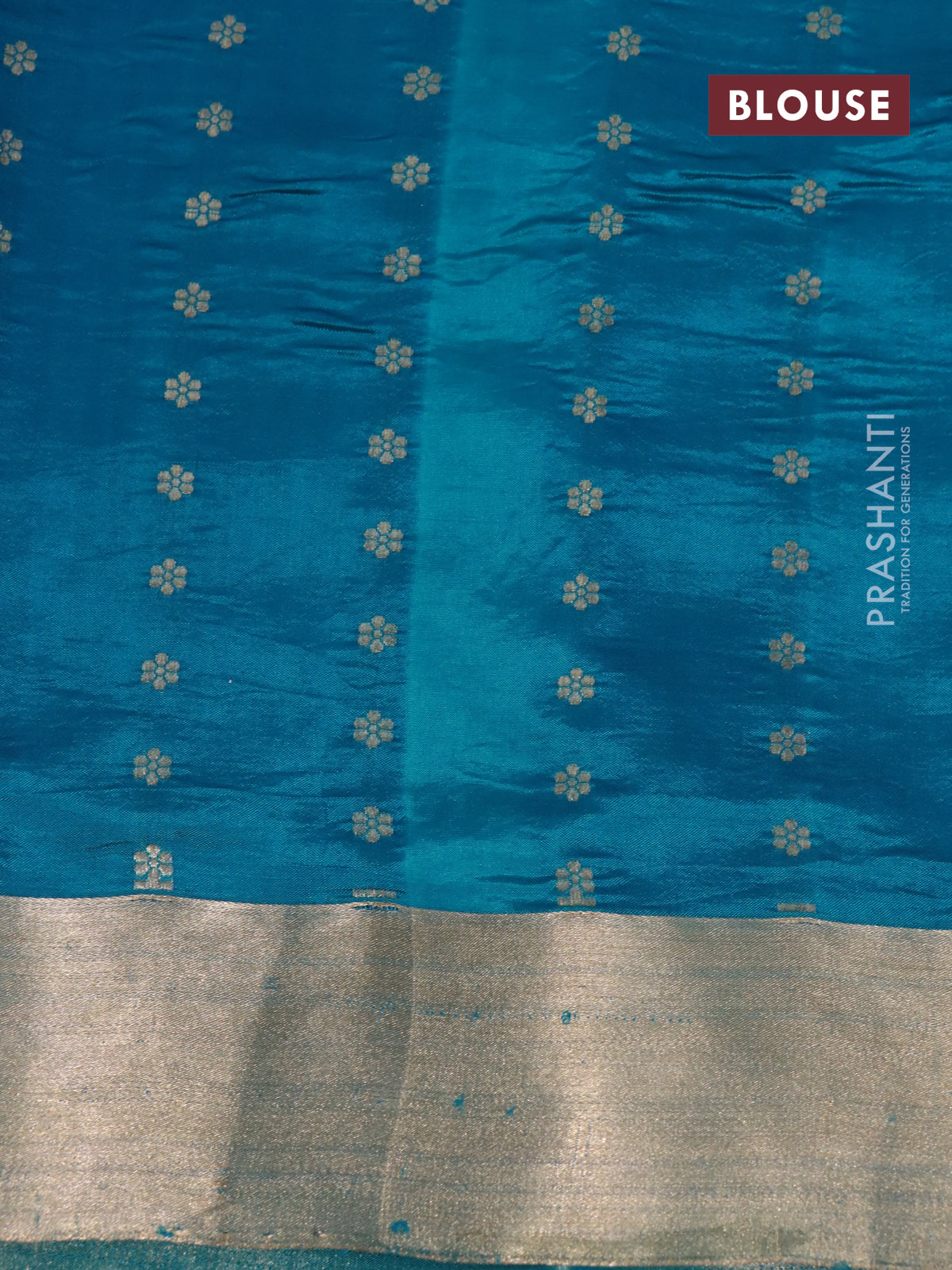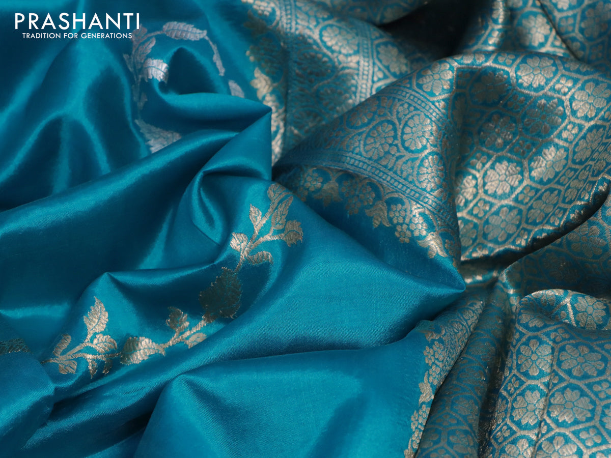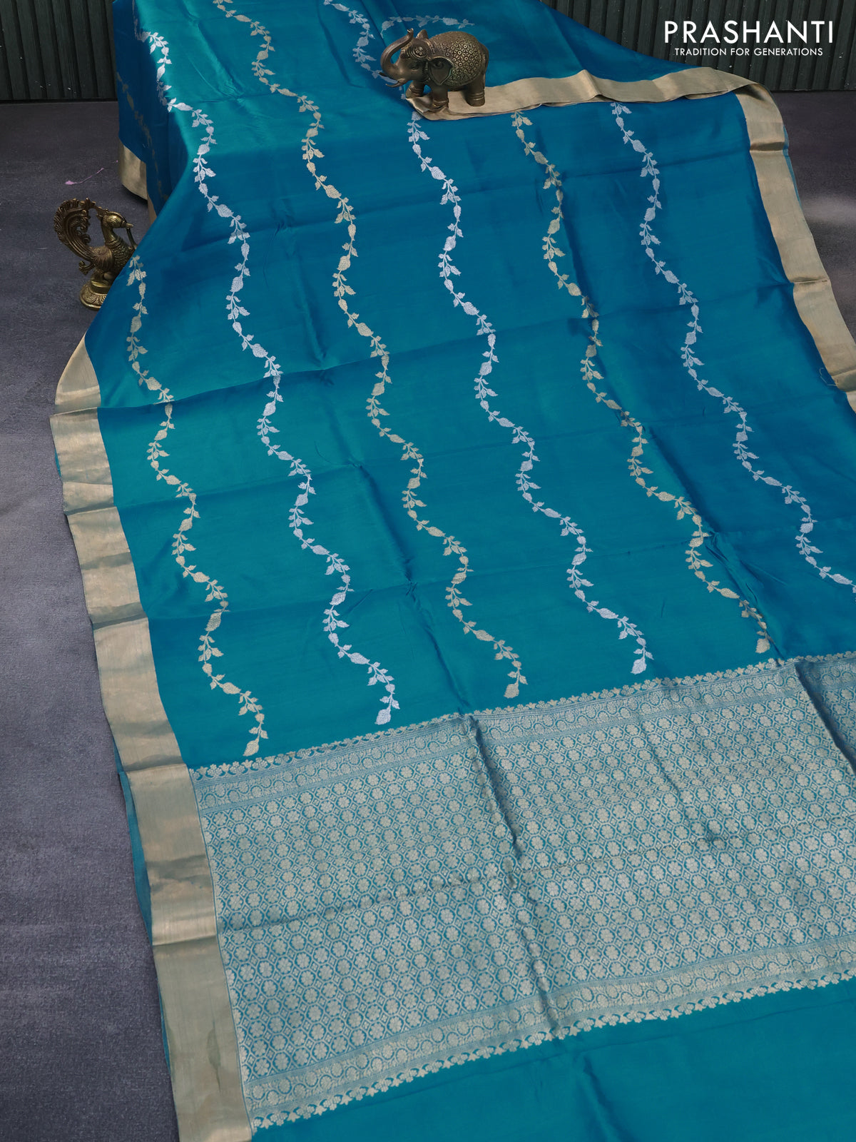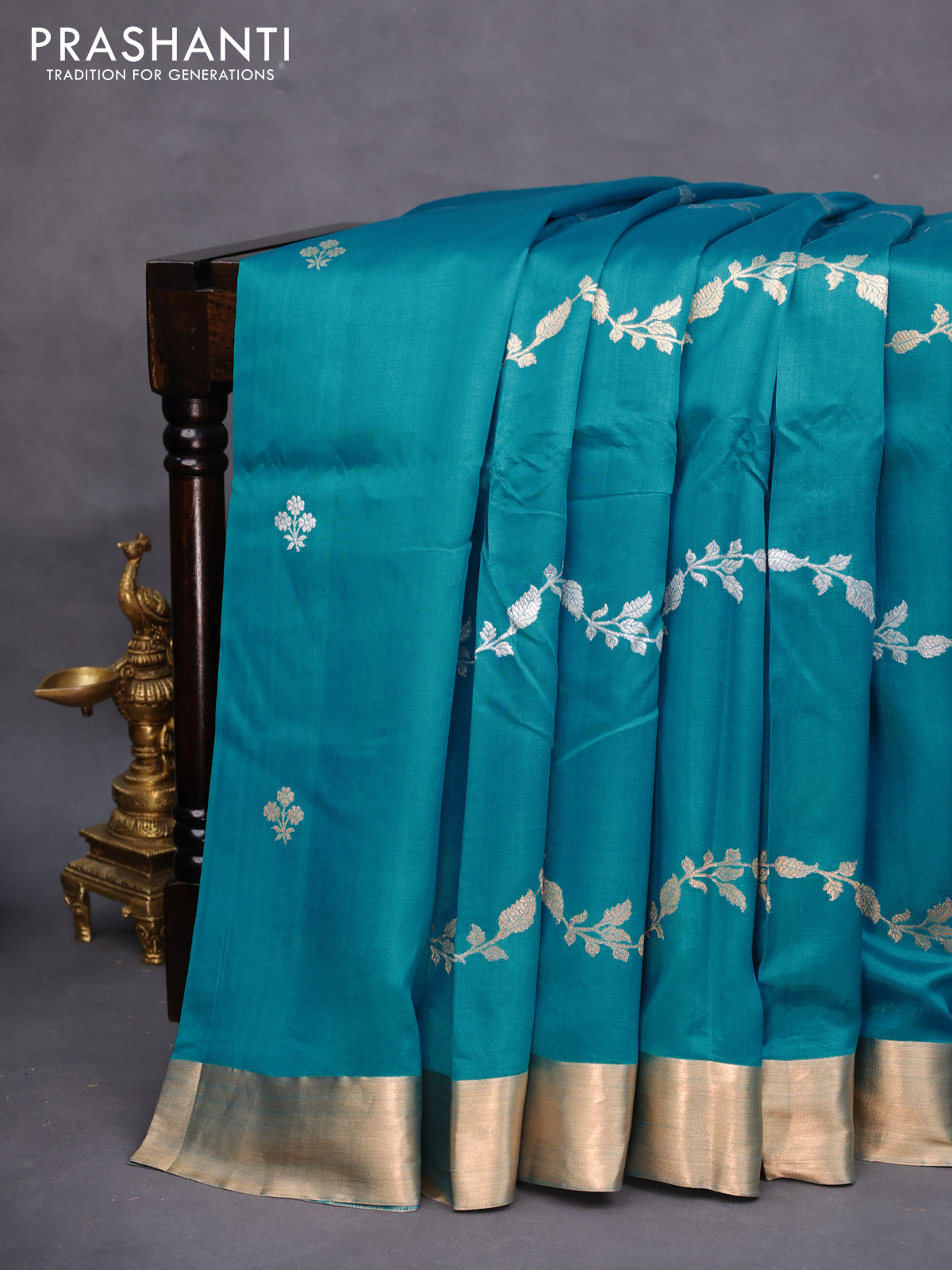 Banarasi poona silk saree cs blue with silver & gold zari weaves and zari woven border