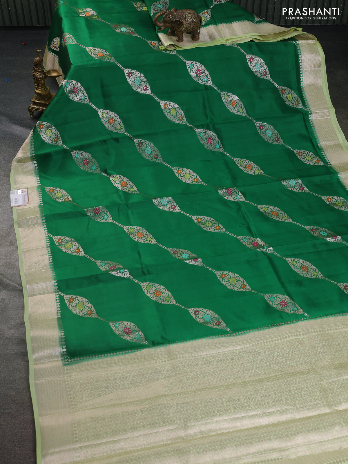 Banarasi poona silk saree green and pista green with allover zari weaves and zari woven border