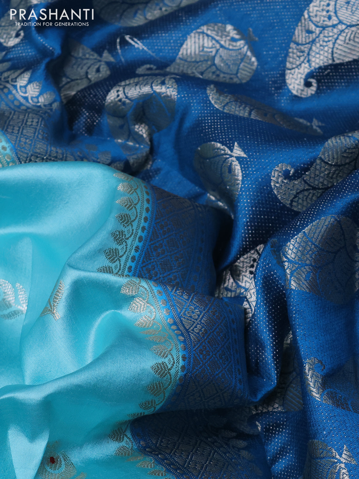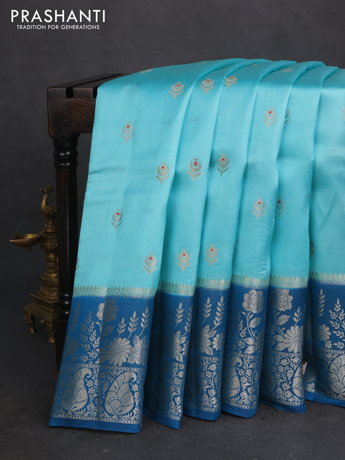 Banarasi poona silk saree light blue and cs blue with silver & gold zari woven buttas and rich zari woven border