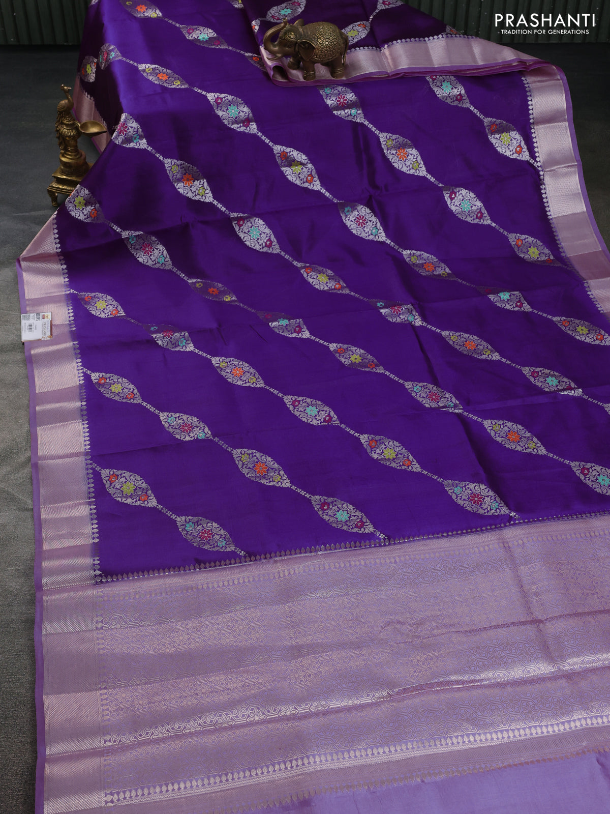 Banarasi poona silk saree violet and lavender with allover zari weaves and zari woven border