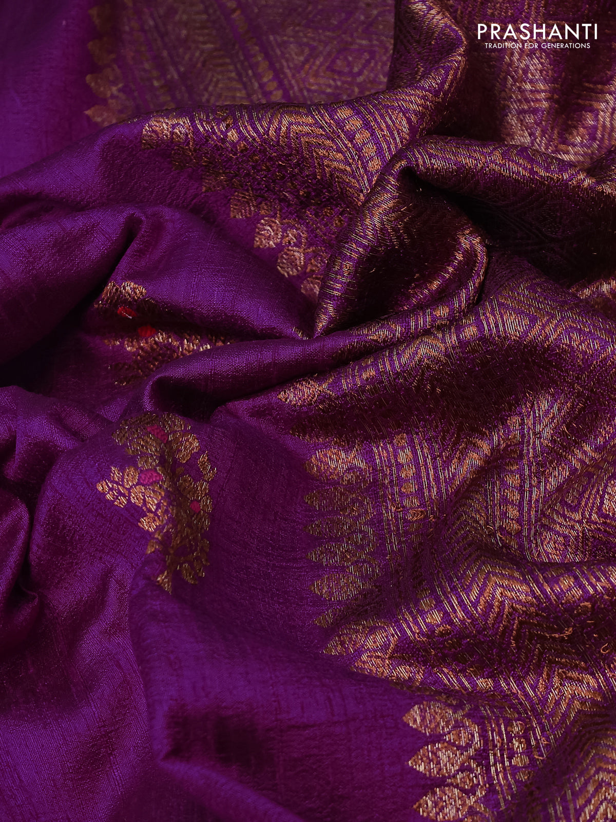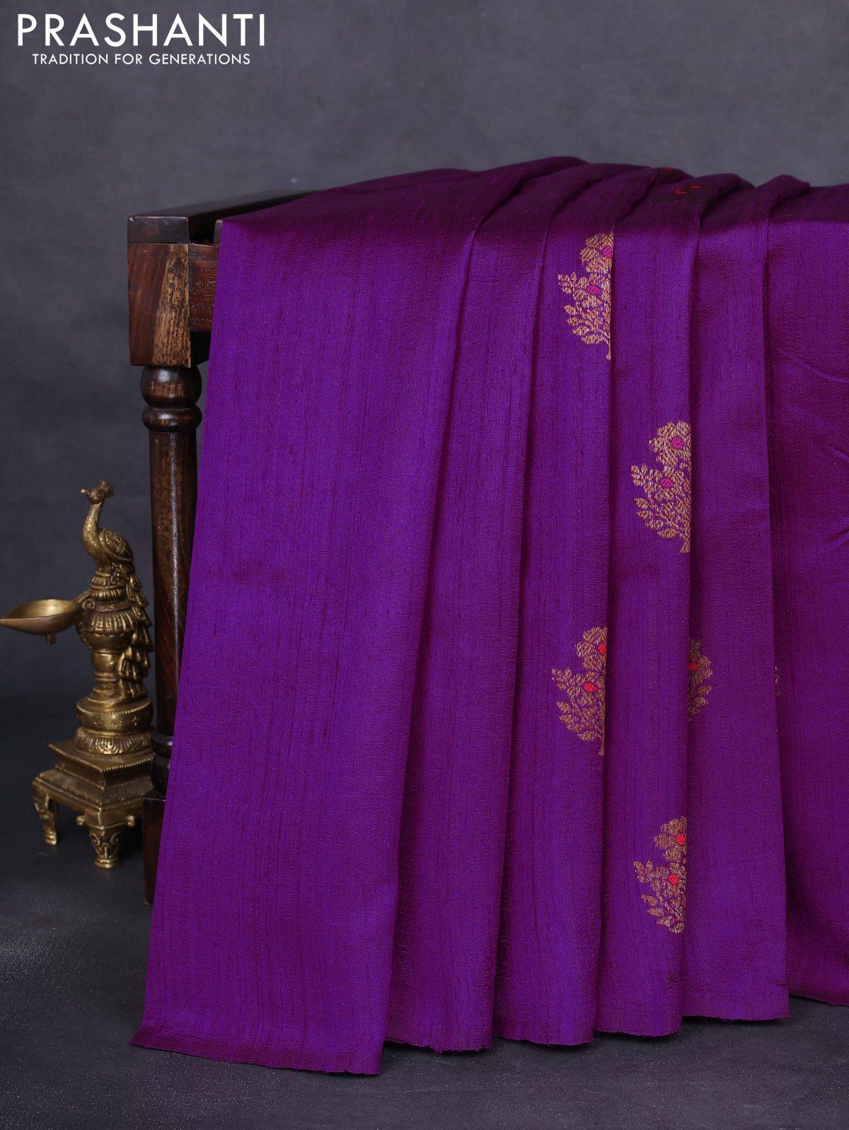 Banarasi raw silk saree purple and red with woven buttas in borderless style