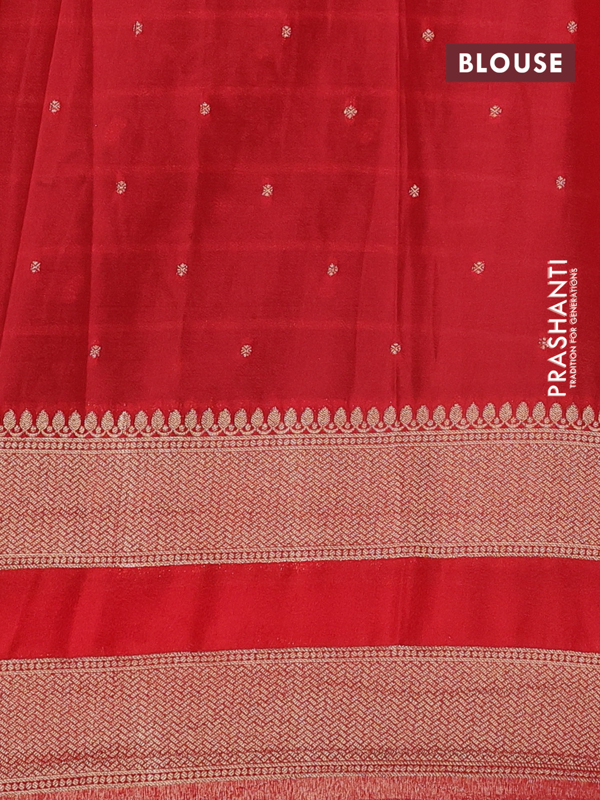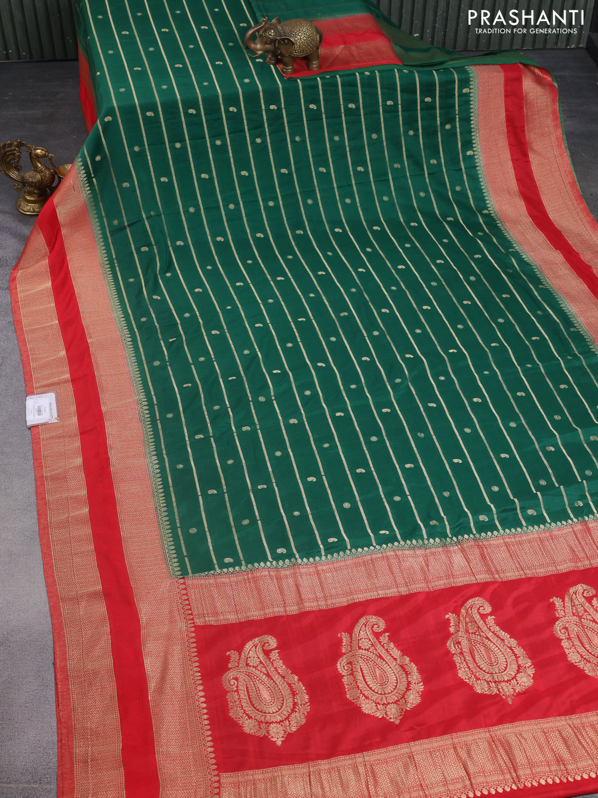 Banarasi semi crepe saree green and red with allover zari weaves & buttas and rettapet zari woven border