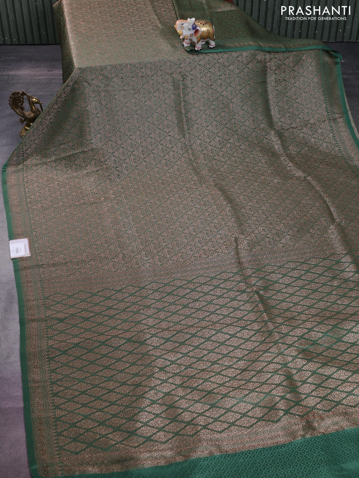 Banarasi semi crepe saree green with allover thread & zari woven brocade weaves and woven border