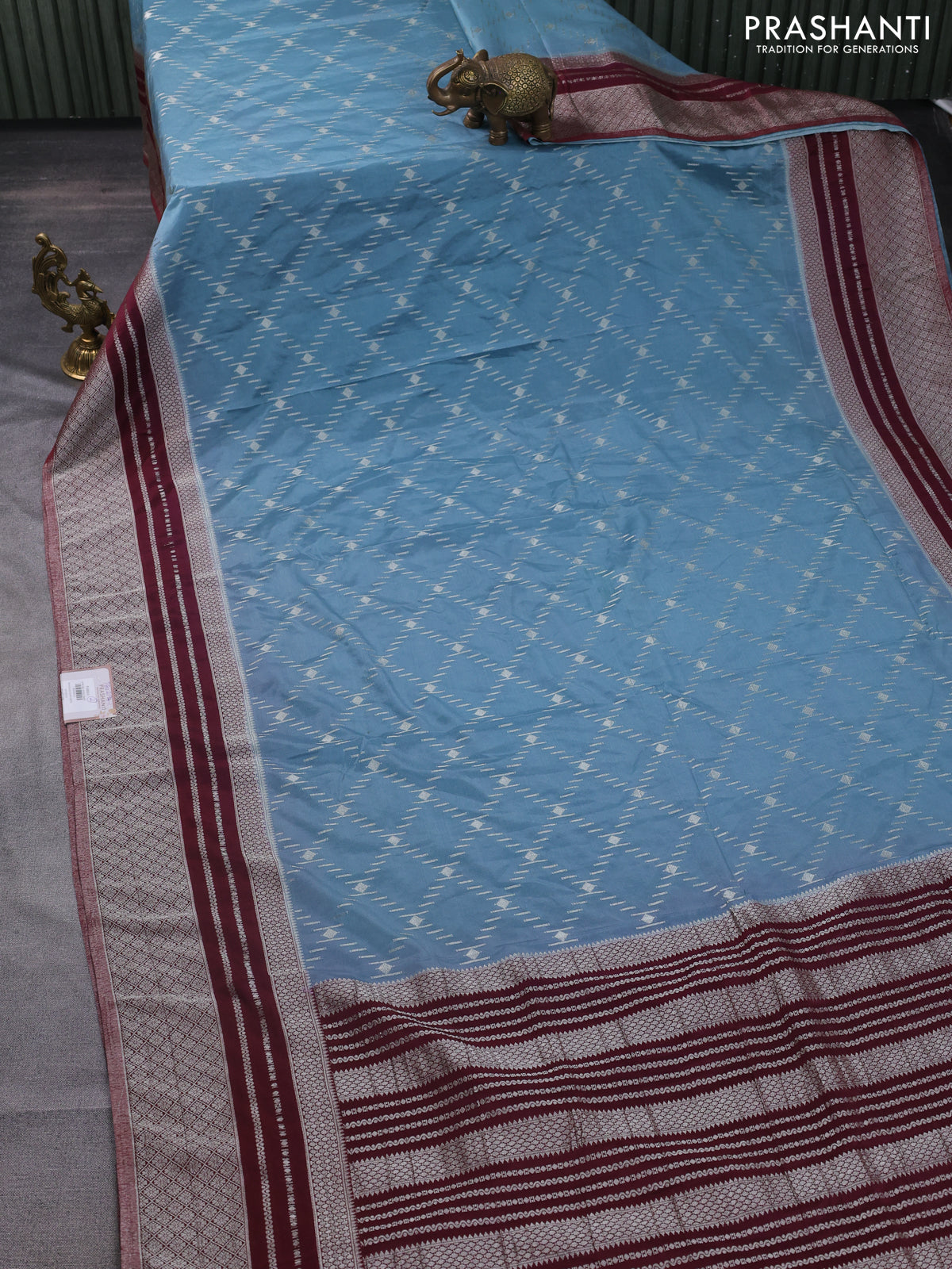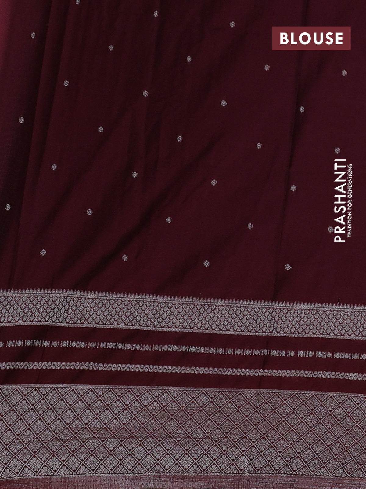 Banarasi semi crepe saree pastel blue and maroon with allover silver zari weaves and silver zari woven border