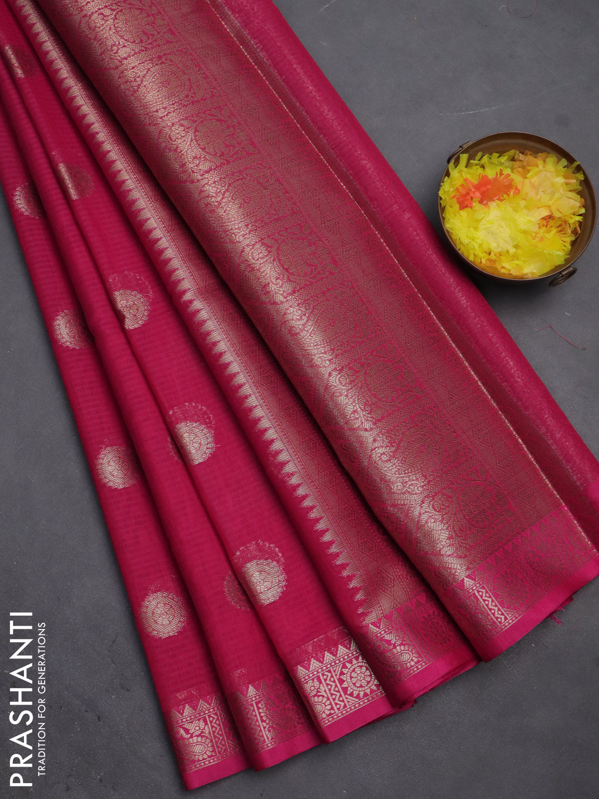 Banarasi semi dupion silk saree dark pink with zari woven buttas and zari woven border