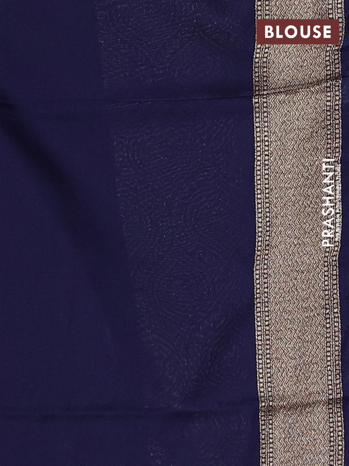 Banarasi semi katan saree navy blue with allover thread & zari woven brocade weaves and woven border