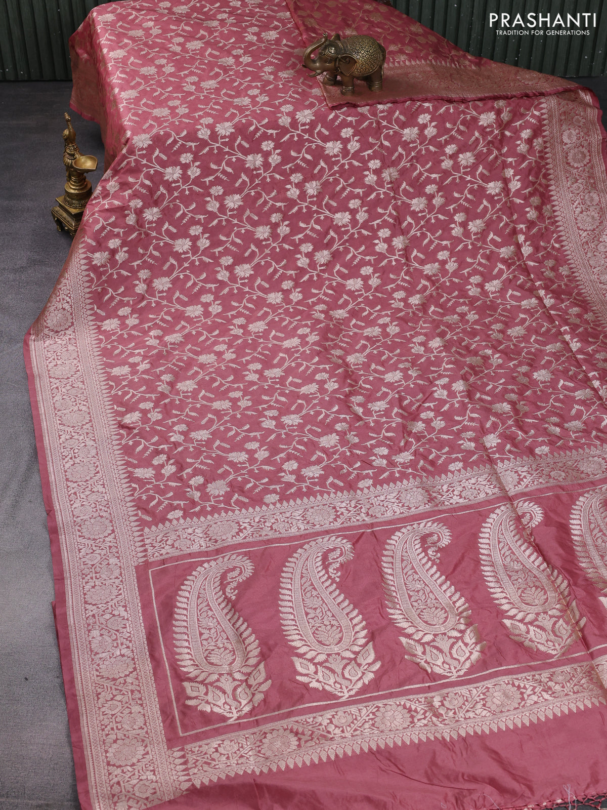 Banarasi semi katan saree pastel peach with allover zari weaves and zari woven border