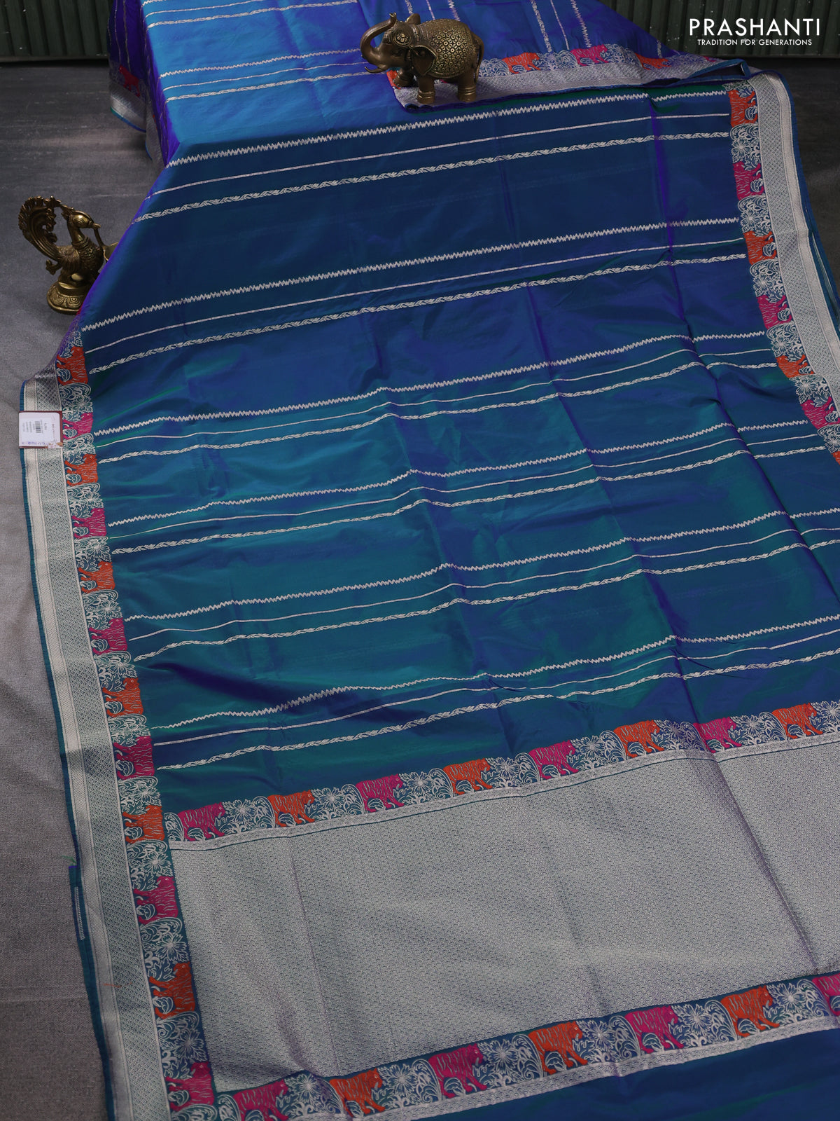 Banarasi semi katan silk saree dual shade of bluish green with allover zari weaves and thread & zari woven border