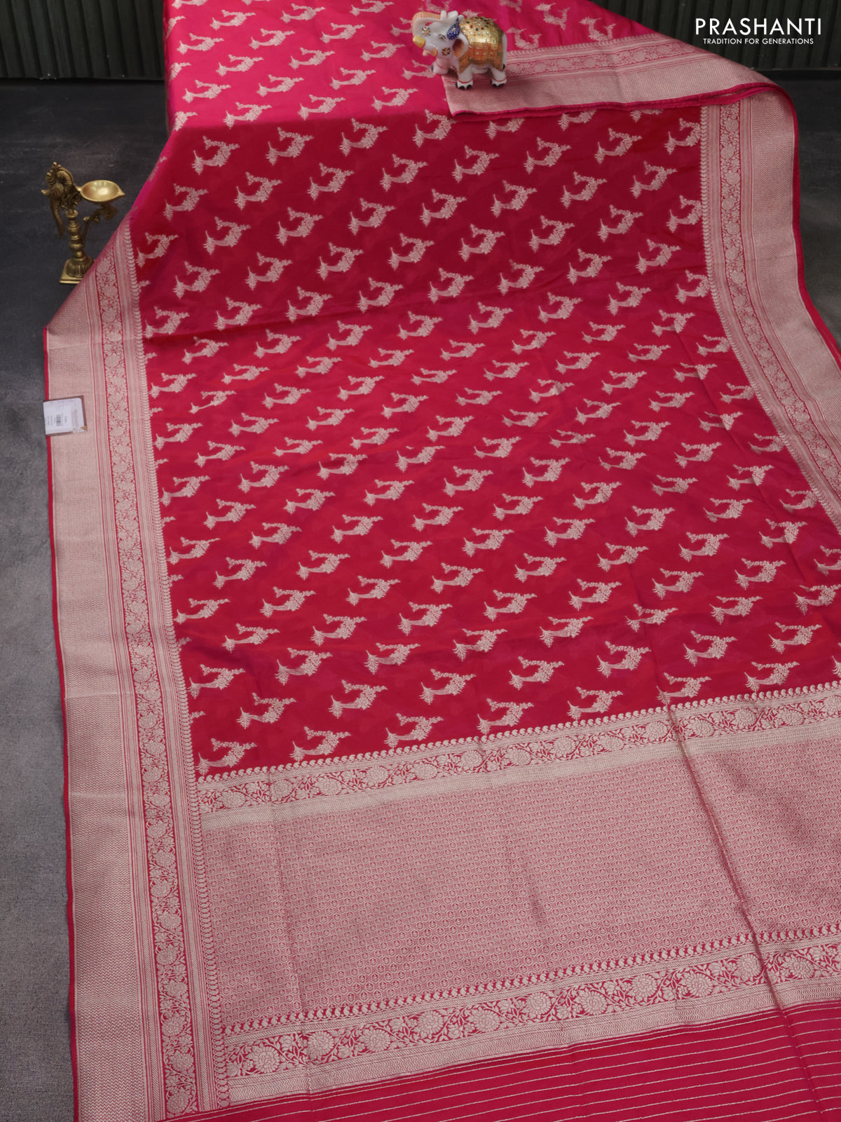 Banarasi semi katan silk saree pink with zari woven buttas and zari woven border