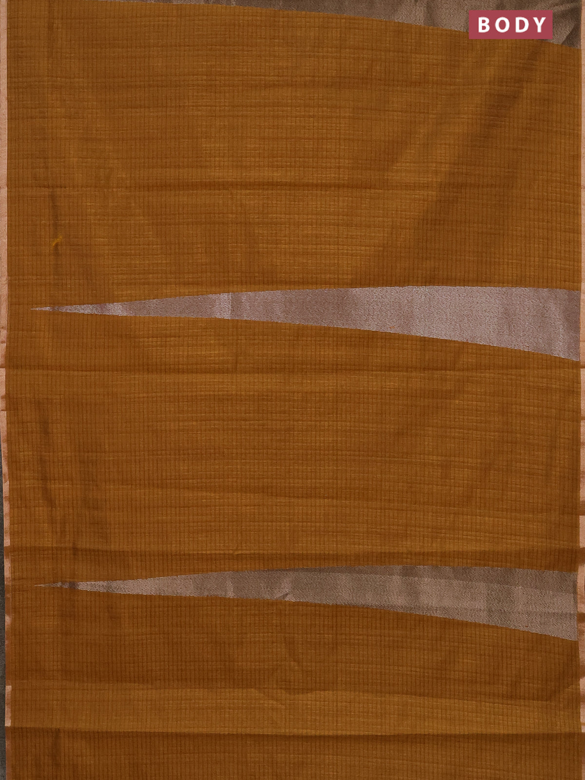 Banarasi semi matka saree dark mustard with allover thread & silver zari stripe pattern and zari woven piping border