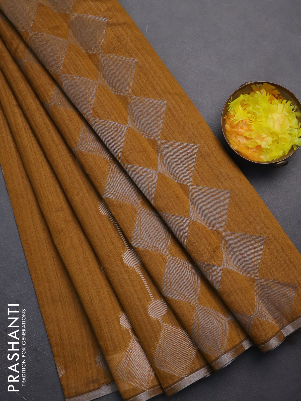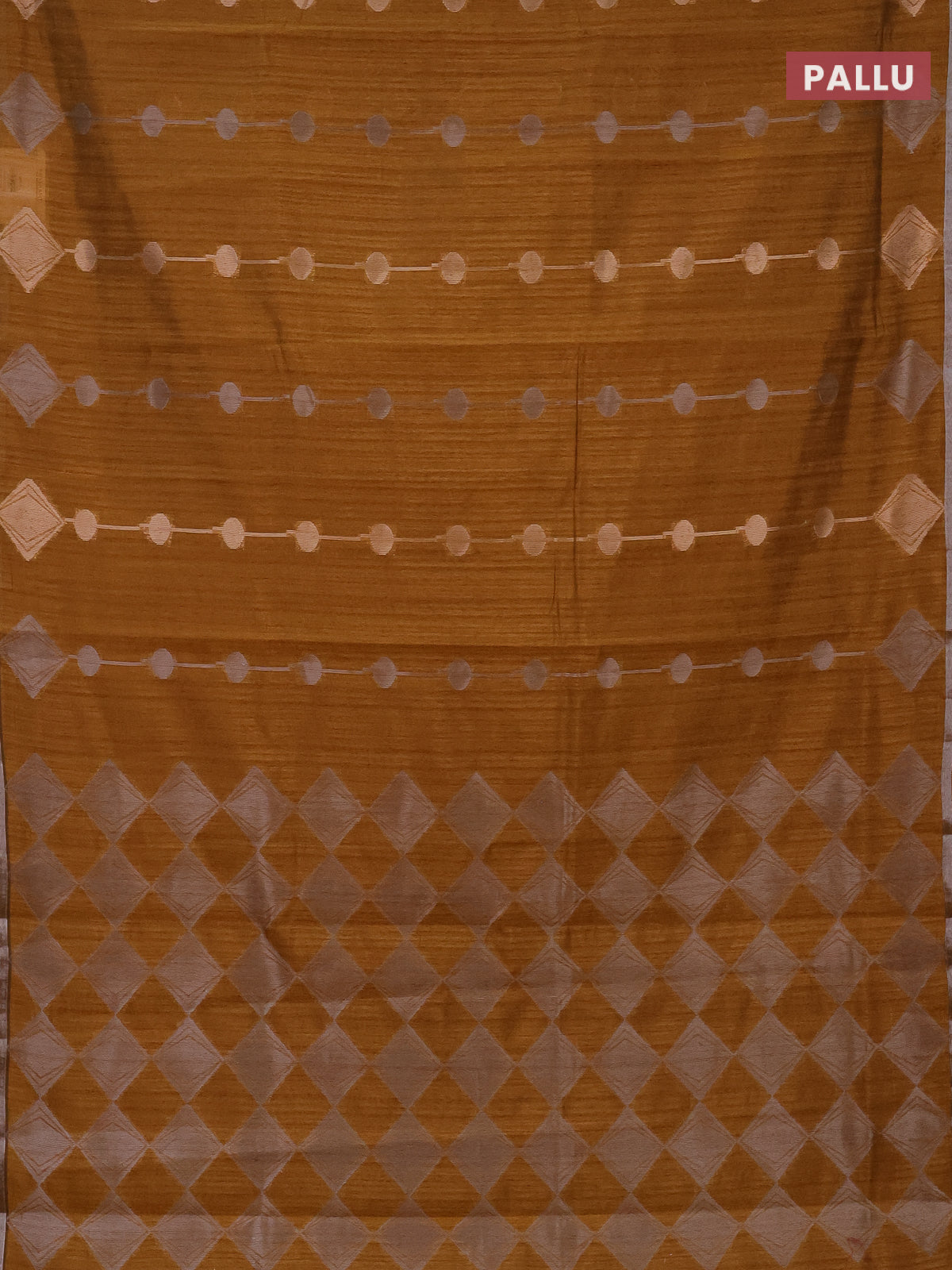 Banarasi semi matka saree dark mustard with silver & gold geometric weaves and zari woven piping border