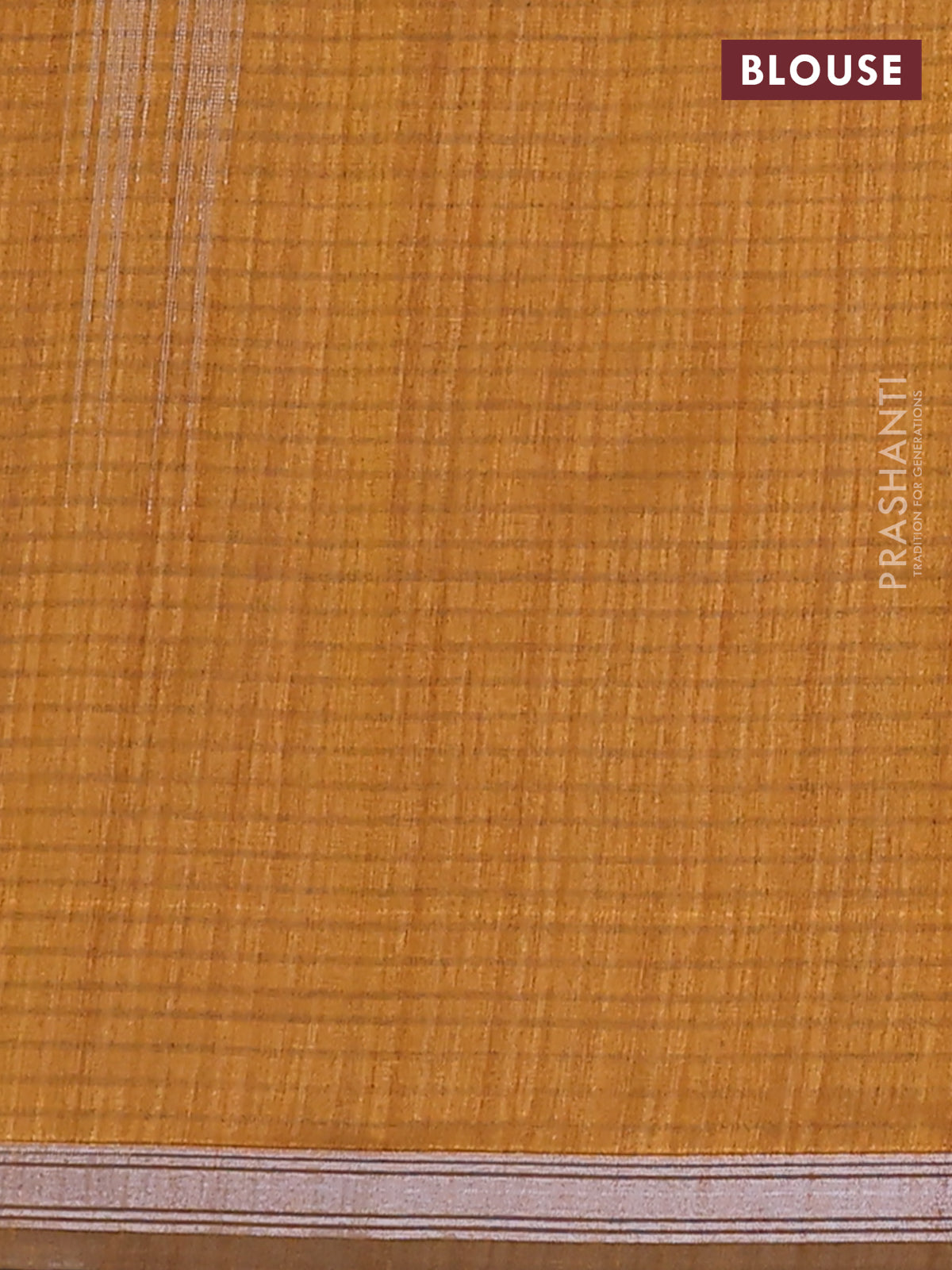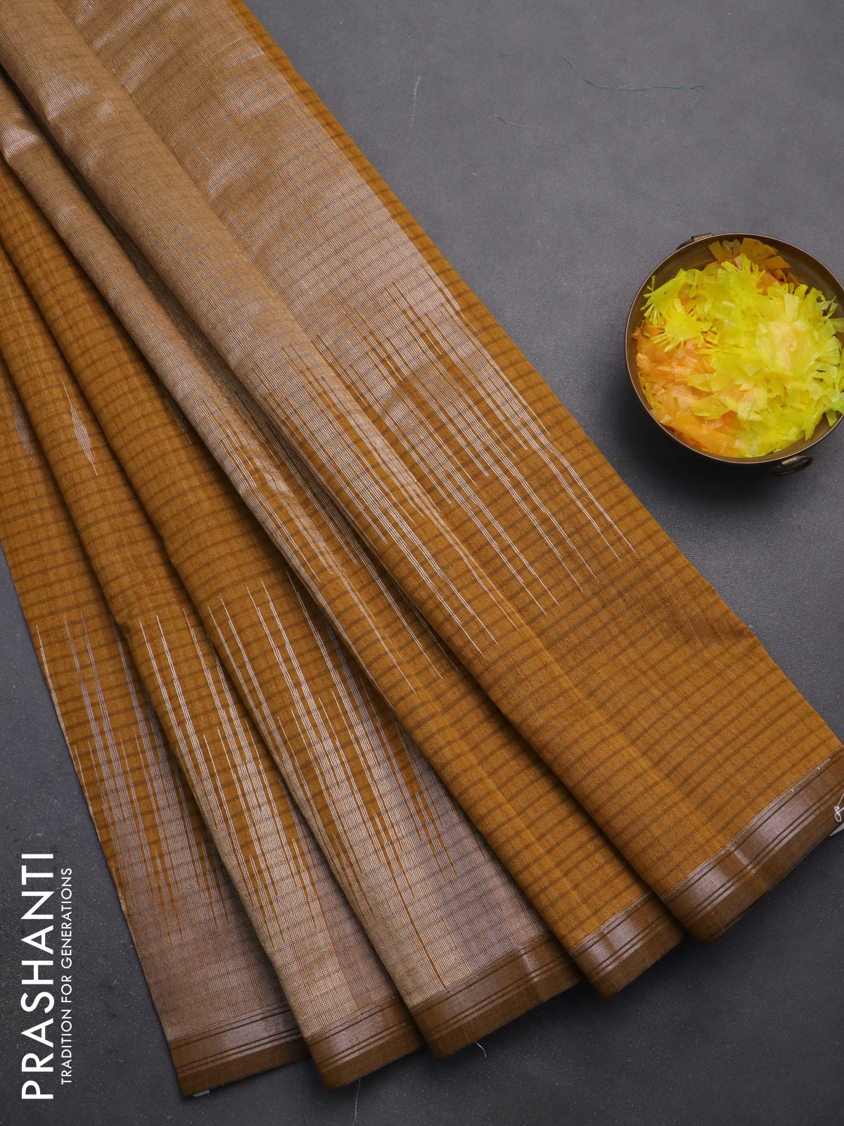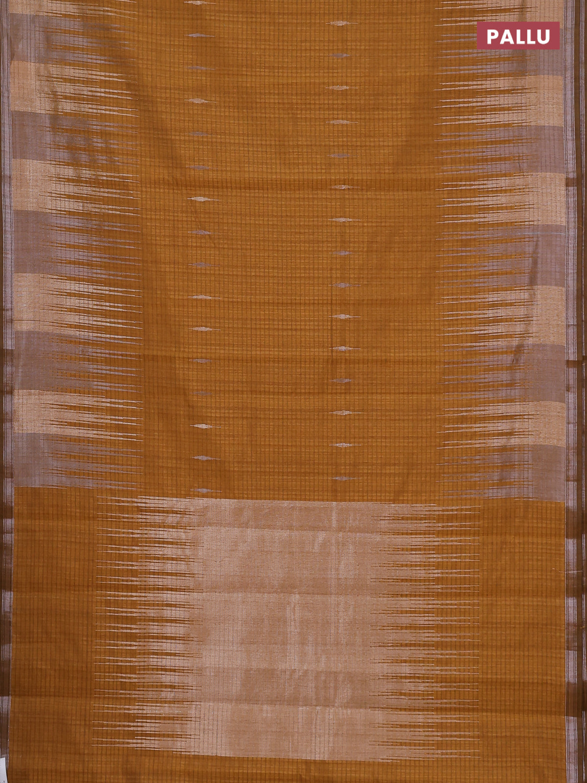 Banarasi semi matka saree dark mustard with silver & gold zari woven buttas and temple design zari woven border