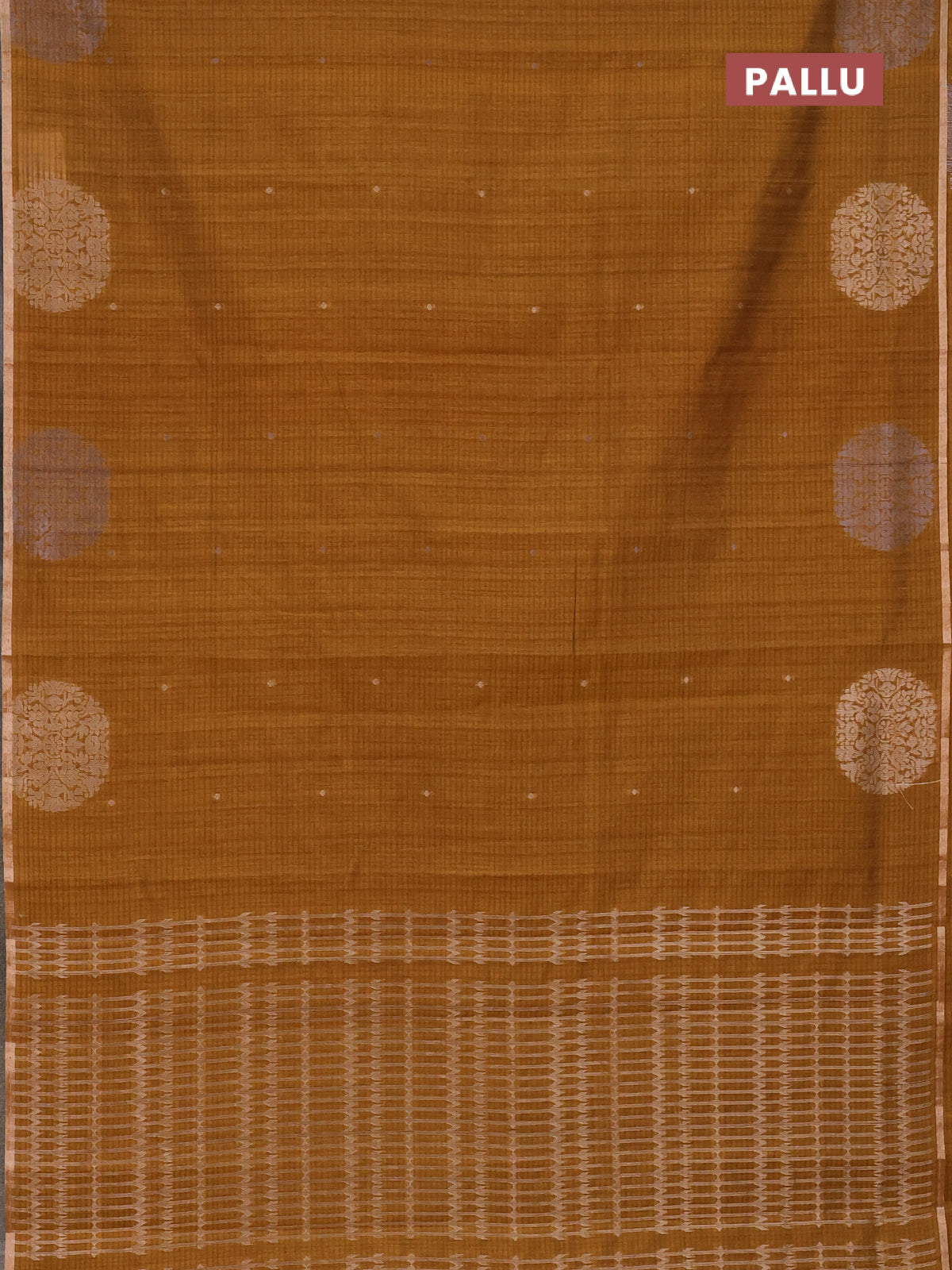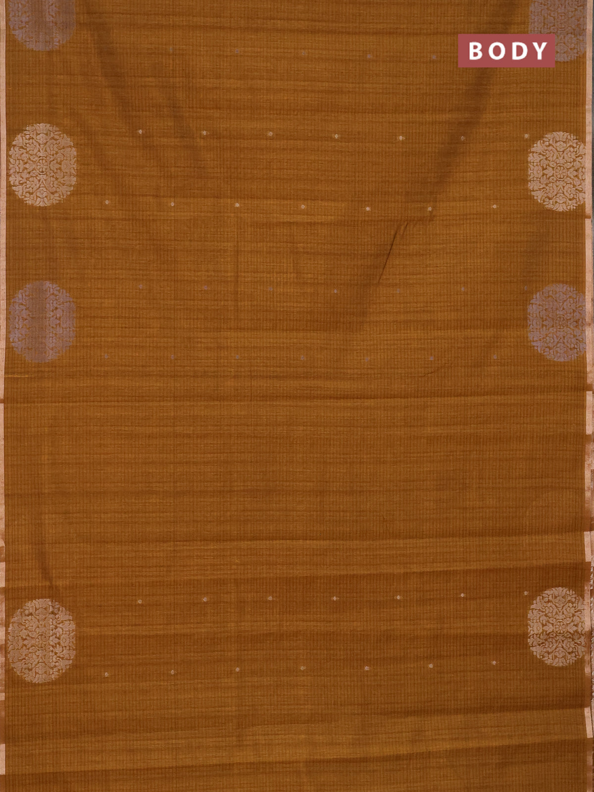 Banarasi semi matka saree dark mustard with silver & gold zari woven buttas and zari woven butta border