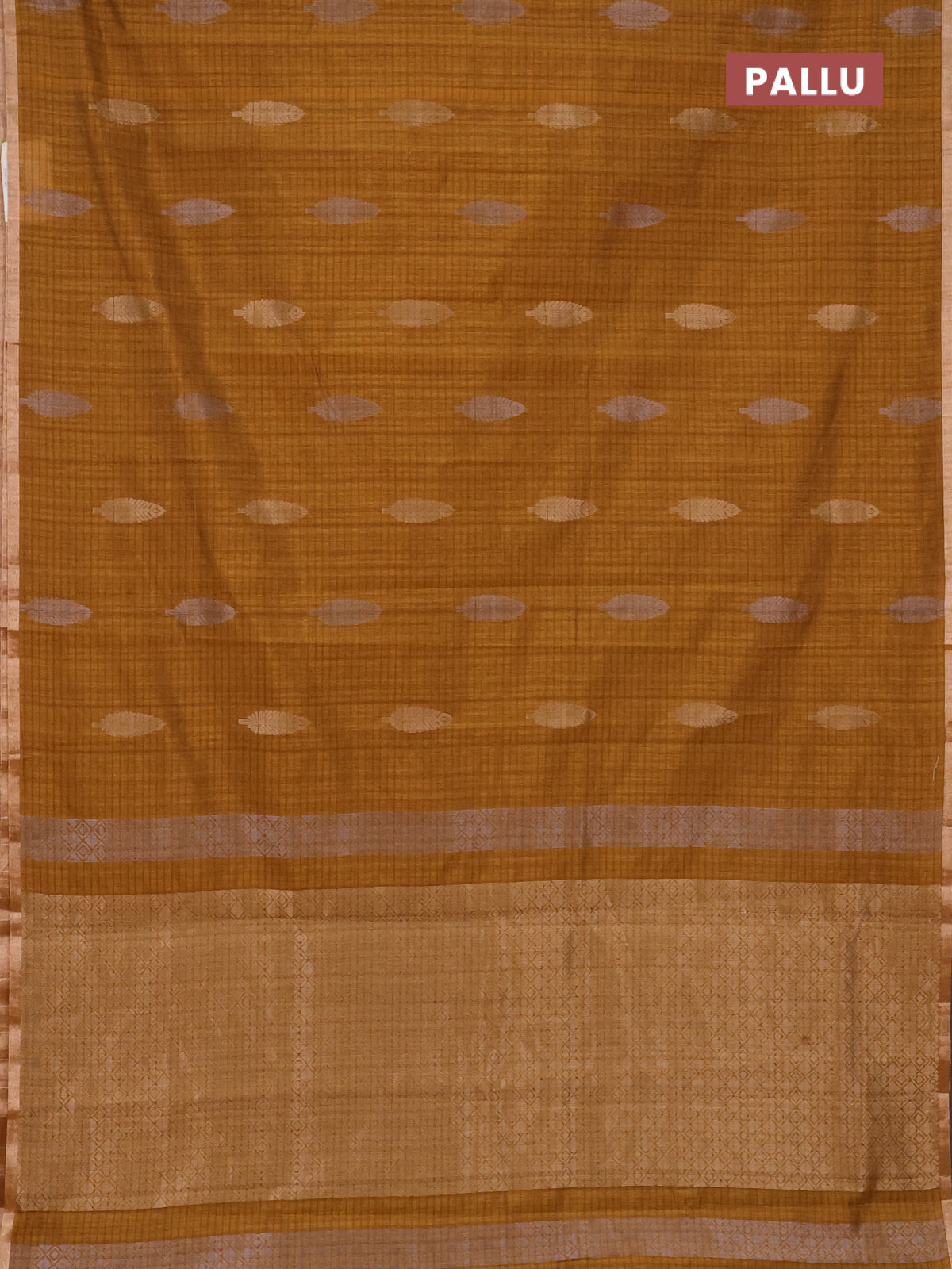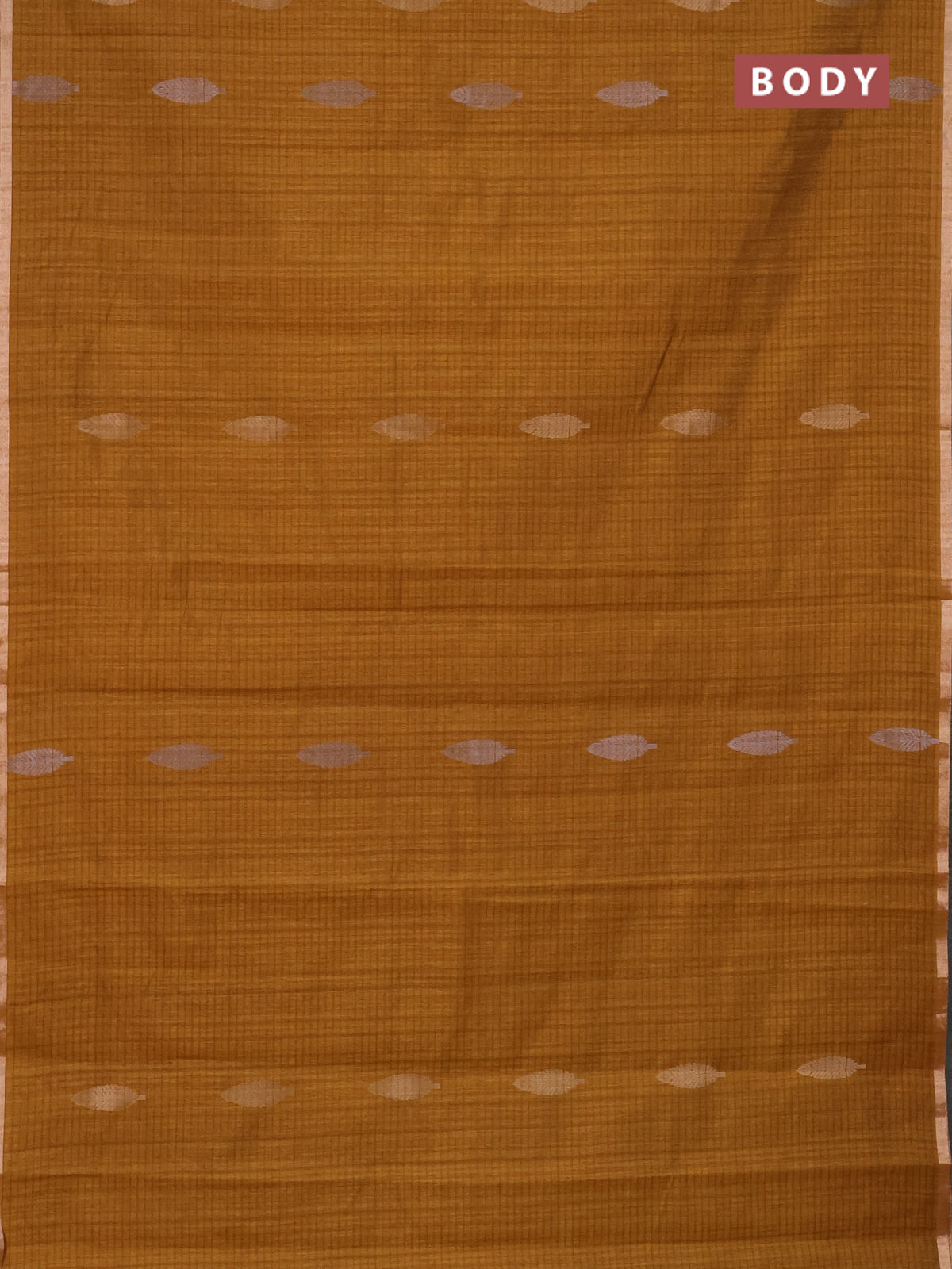 Banarasi semi matka saree dark mustard with silver & gold zari woven buttas and zari woven piping border