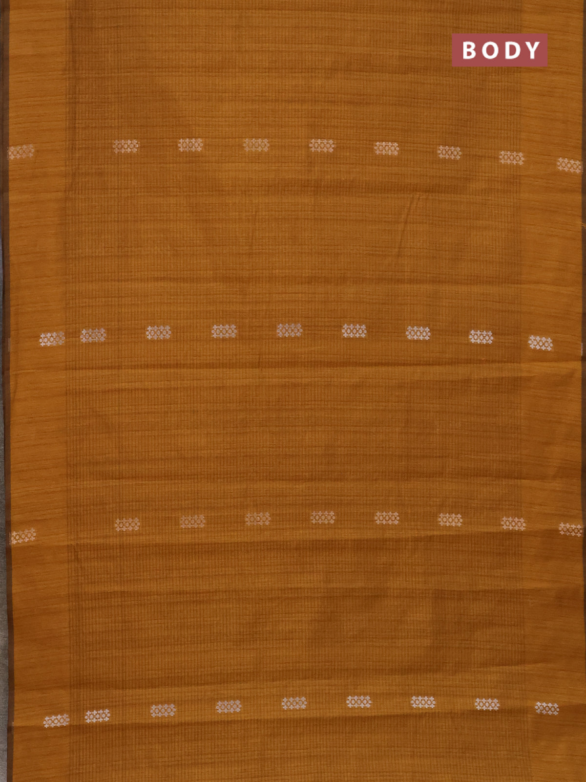 Banarasi semi matka saree dark mustard with silver & gold zari woven buttas in borderless style
