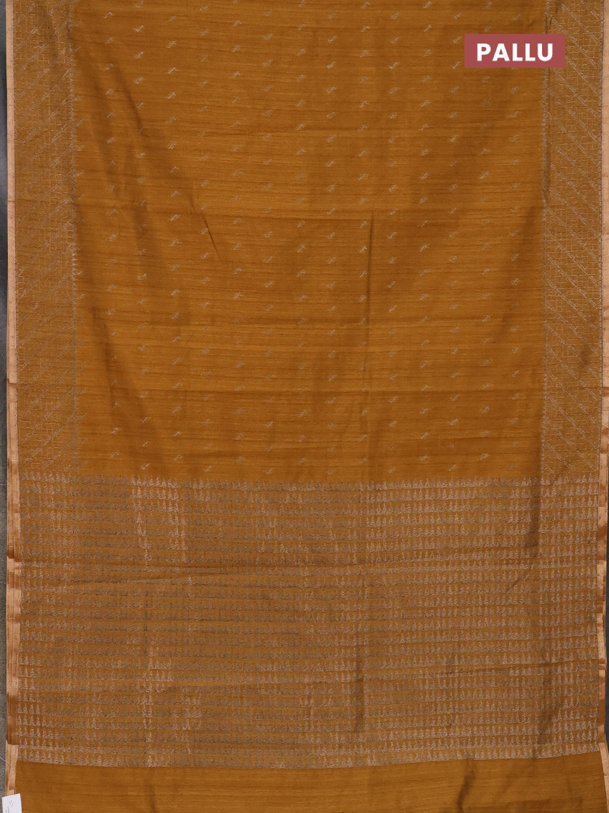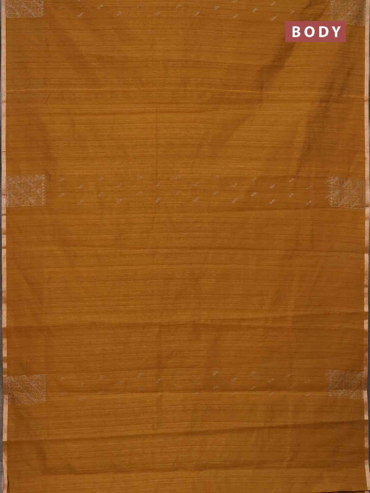 Banarasi semi matka saree dark mustard with thread & silver zari woven buttas and woven border