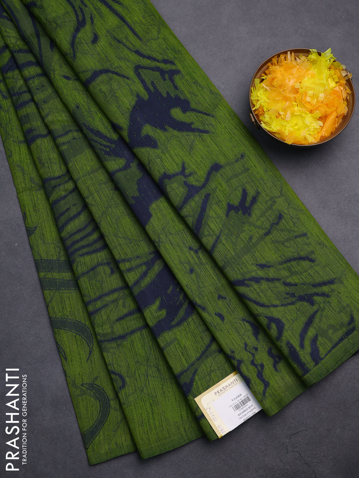 Banarasi semi matka saree light green with allover thread weaves in borderless style