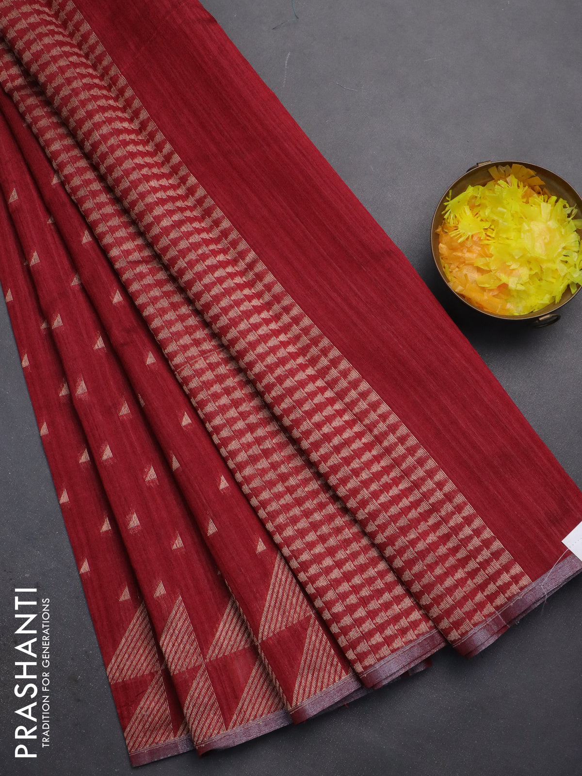 Banarasi semi matka saree maroon with allover zari woven geometric buttas and woven border