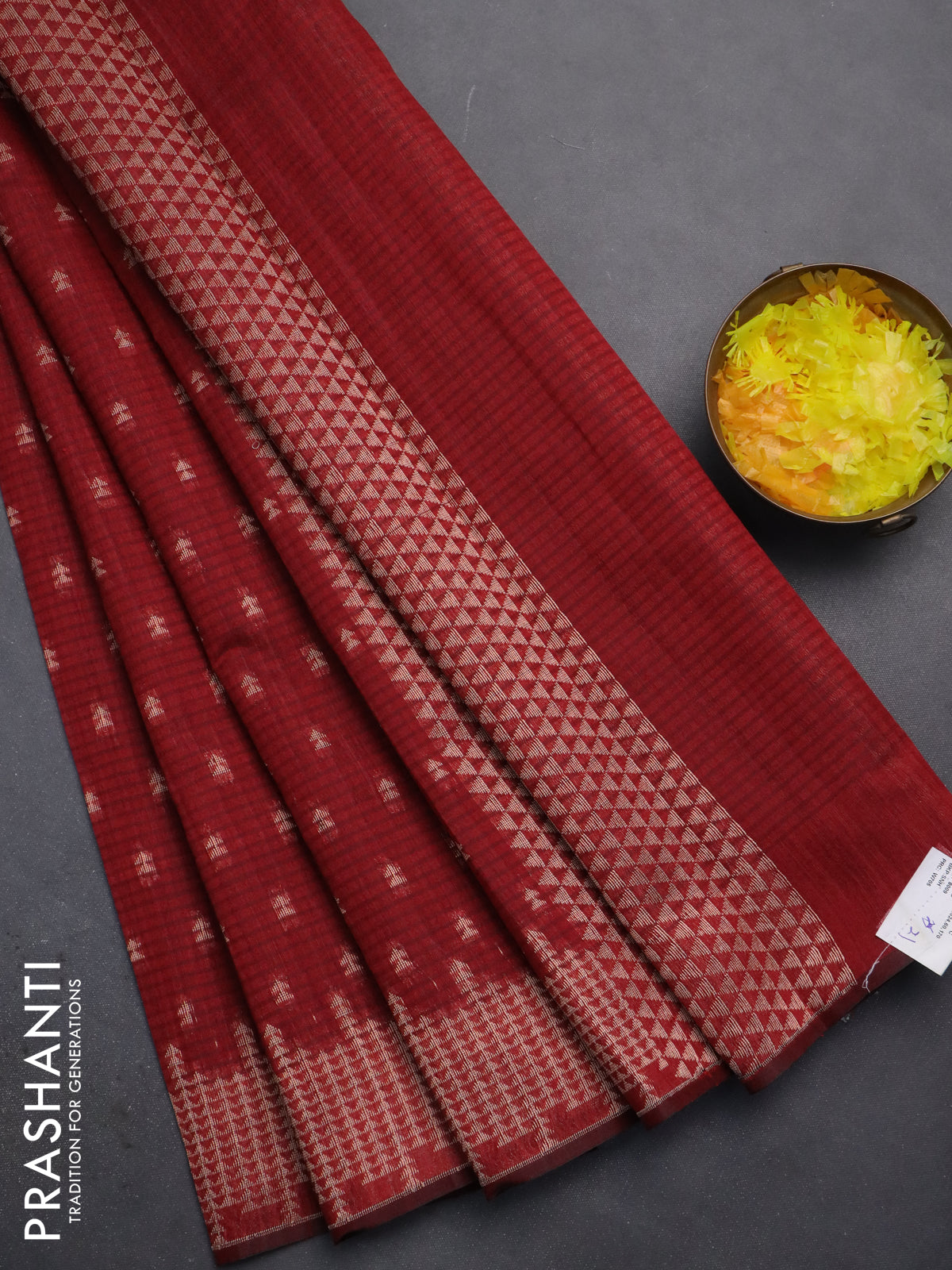 Banarasi semi matka saree maroon with allover zari woven geometric buttas and zari woven border