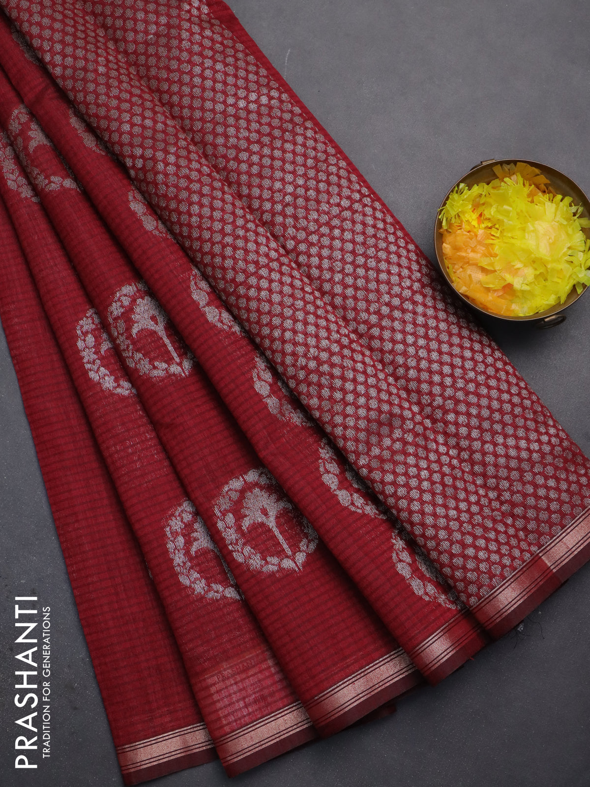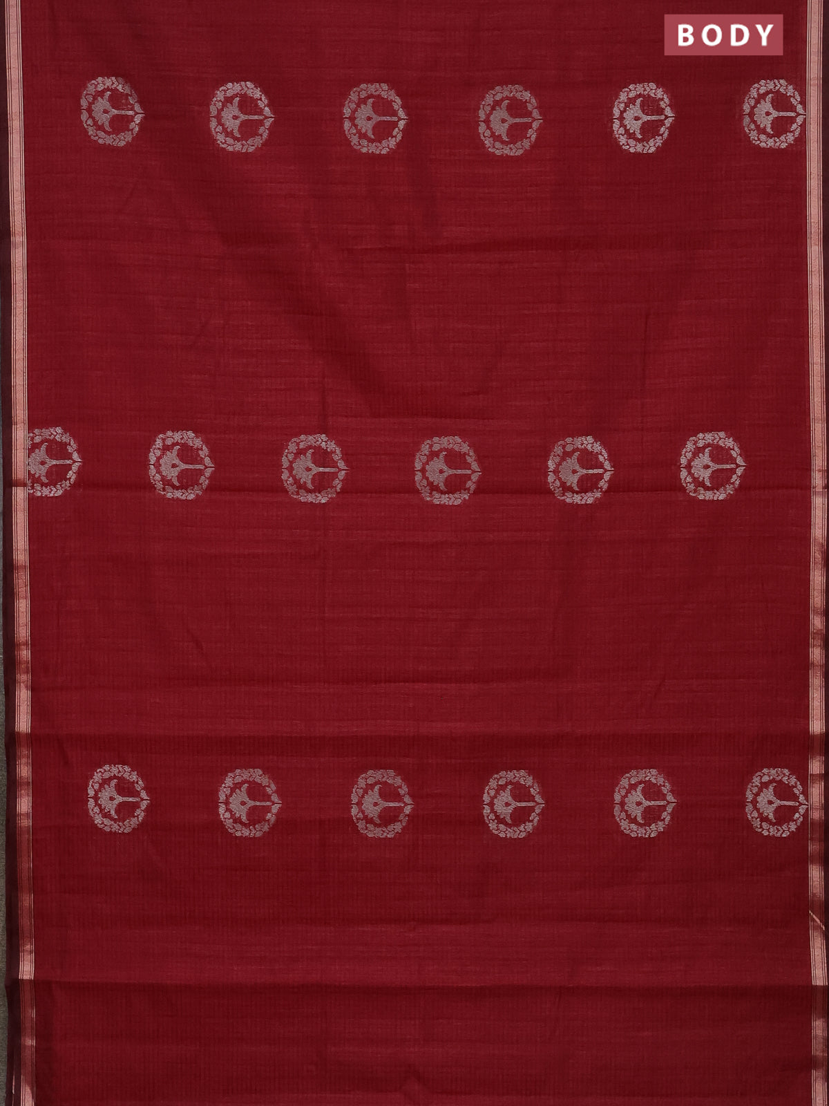 Banarasi semi matka saree maroon with silver & gold zari woven buttas and zari woven piping border