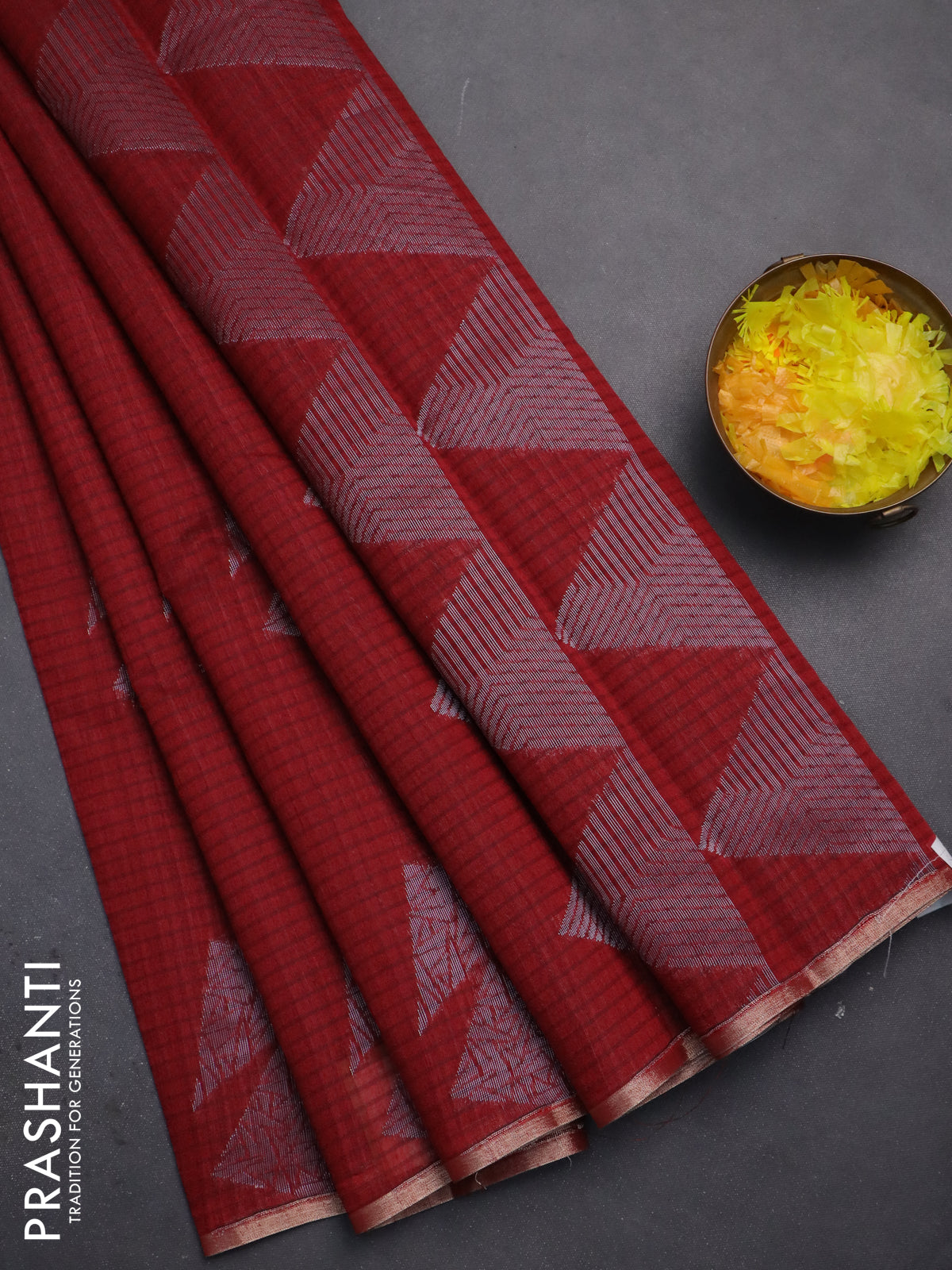 Banarasi semi matka saree maroon with silver & gold zari woven buttas and zari woven piping border