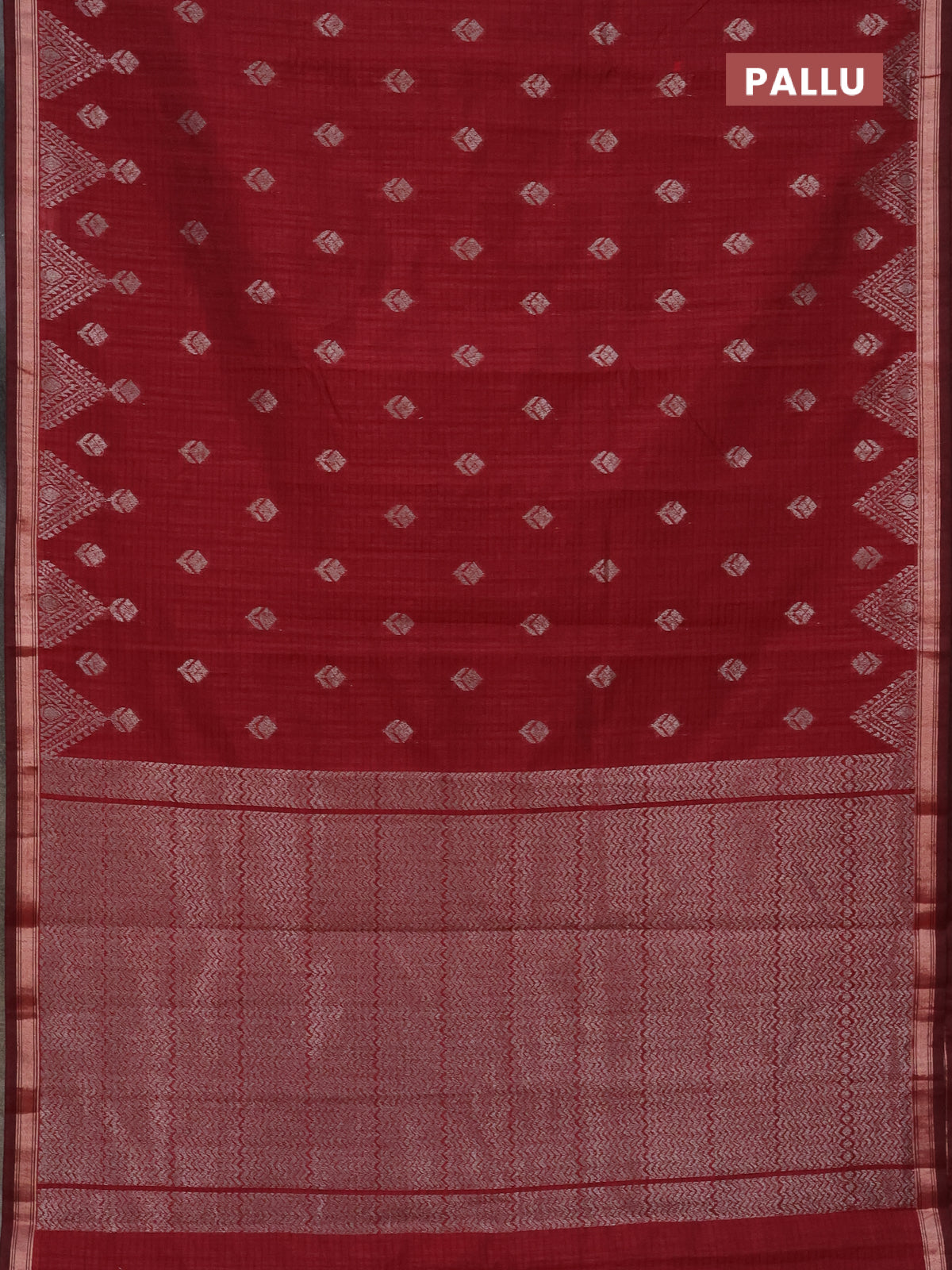 Banarasi semi matka saree maroon with silver zari woven buttas and zari woven border