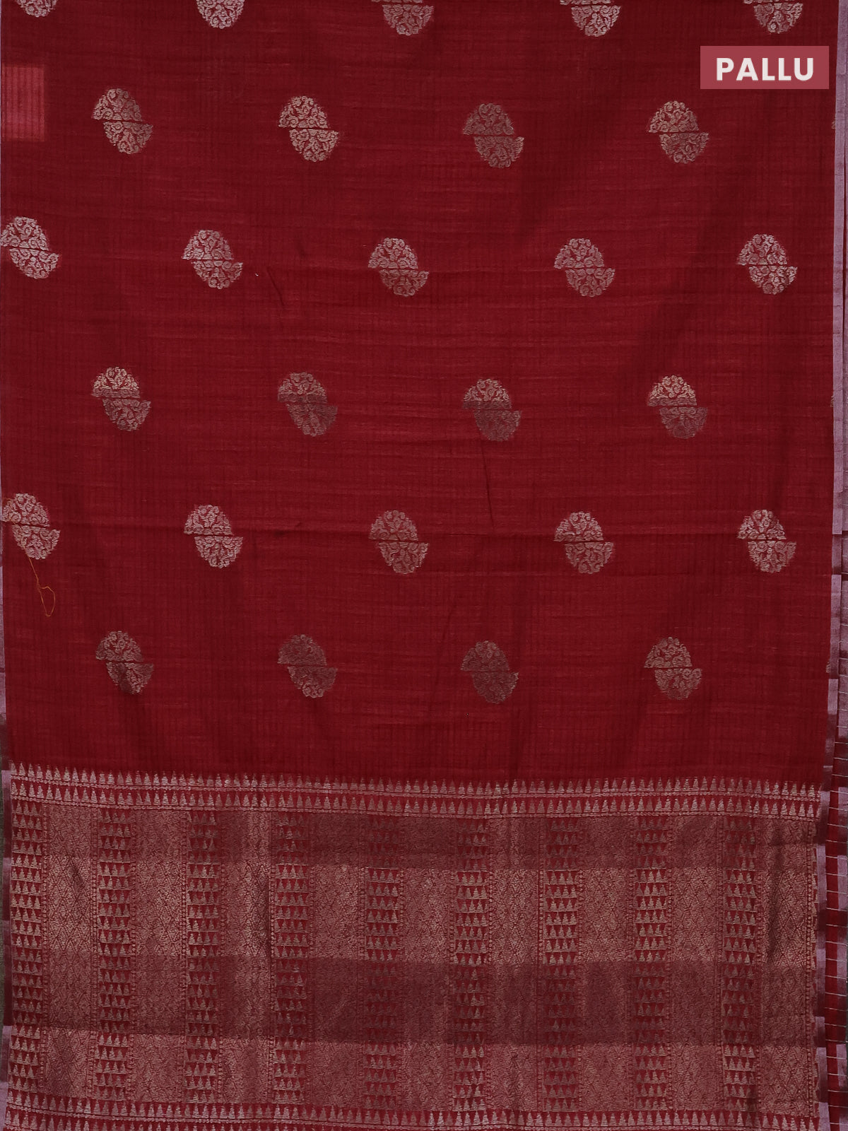 Banarasi semi matka saree maroon with woven buttas and zari woven piping border