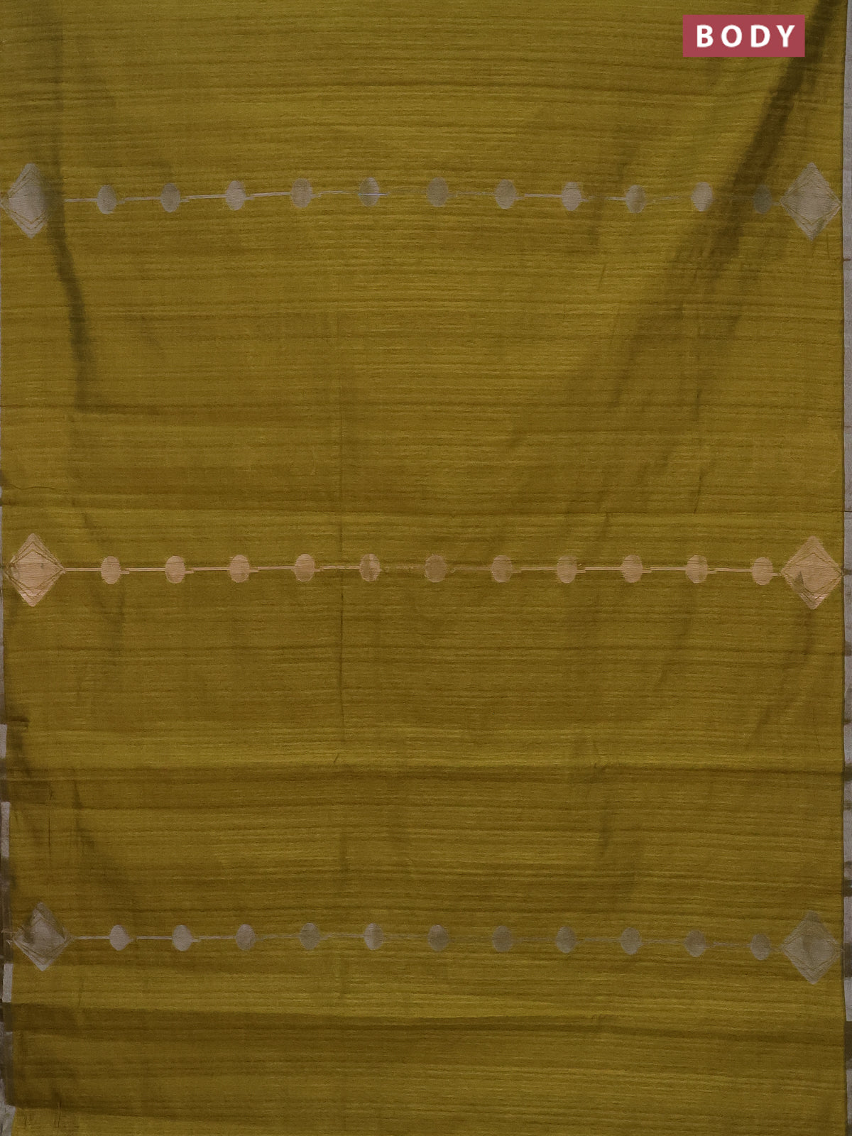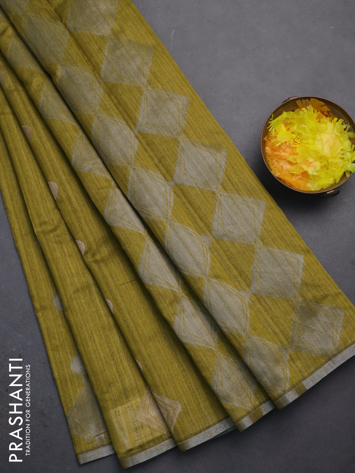 Banarasi semi matka saree mehendi green with silver & gold geometric weaves and zari woven piping border