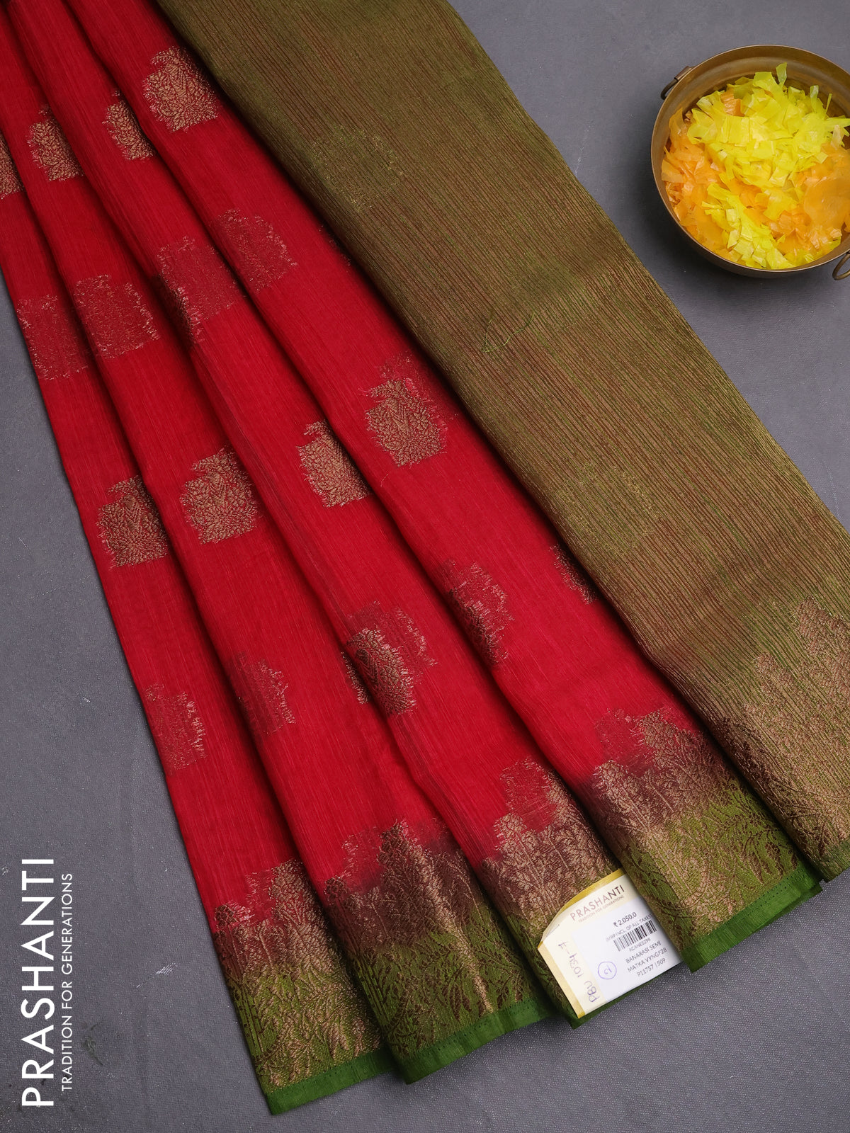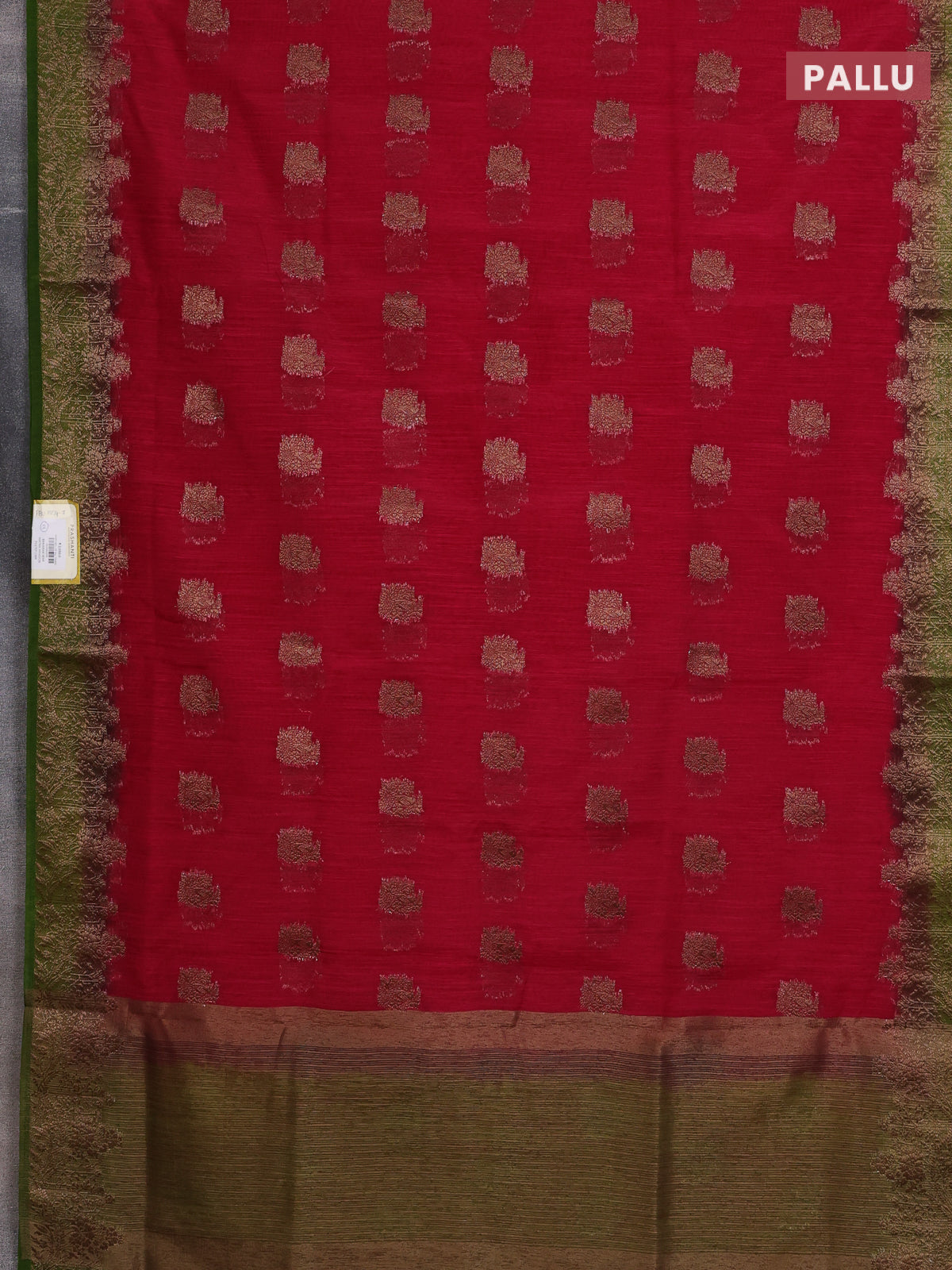 Banarasi semi matka saree pink and mehendi green with thread & zari woven buttas and banarastyle border