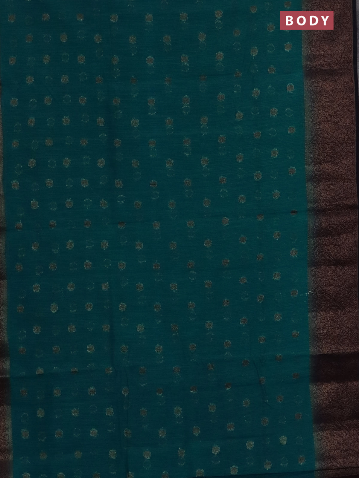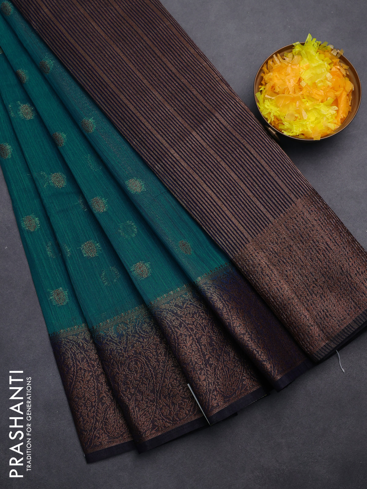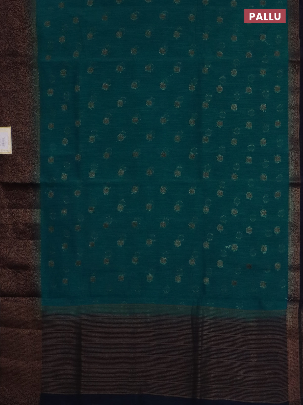 Banarasi semi matka saree teal blue shade and navy blue with thread & zari woven buttas and banarastyle border