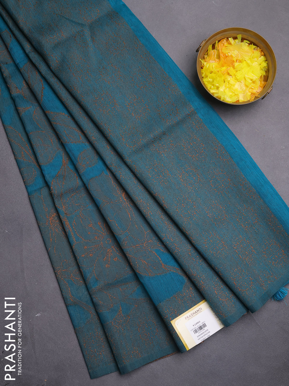 Banarasi semi matka saree teal blue shade with allover thread floral weaves and thread woven border
