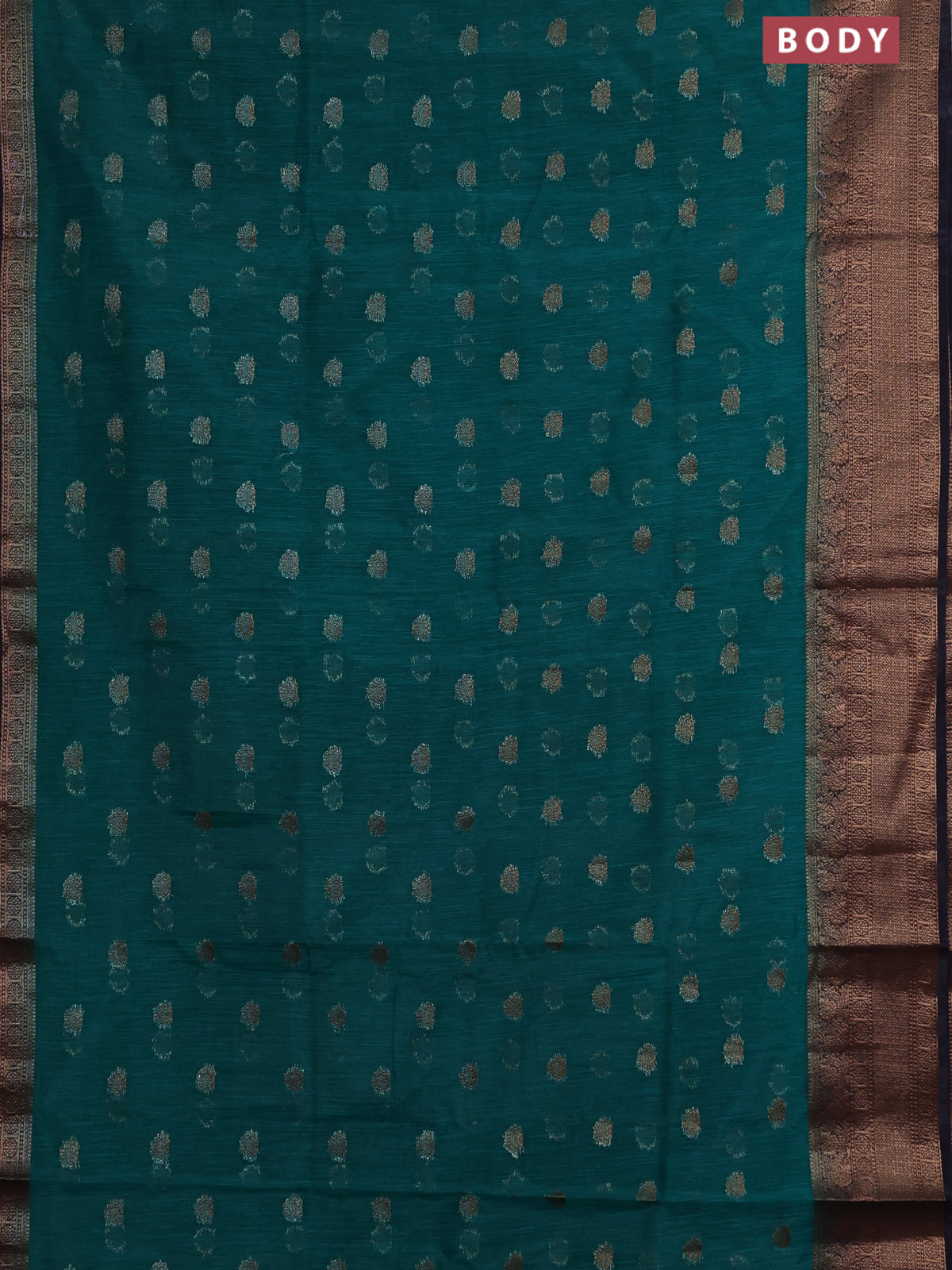 Banarasi semi matka saree teal green and navy blue with allover thread & zari woven buttas and banarasi style border