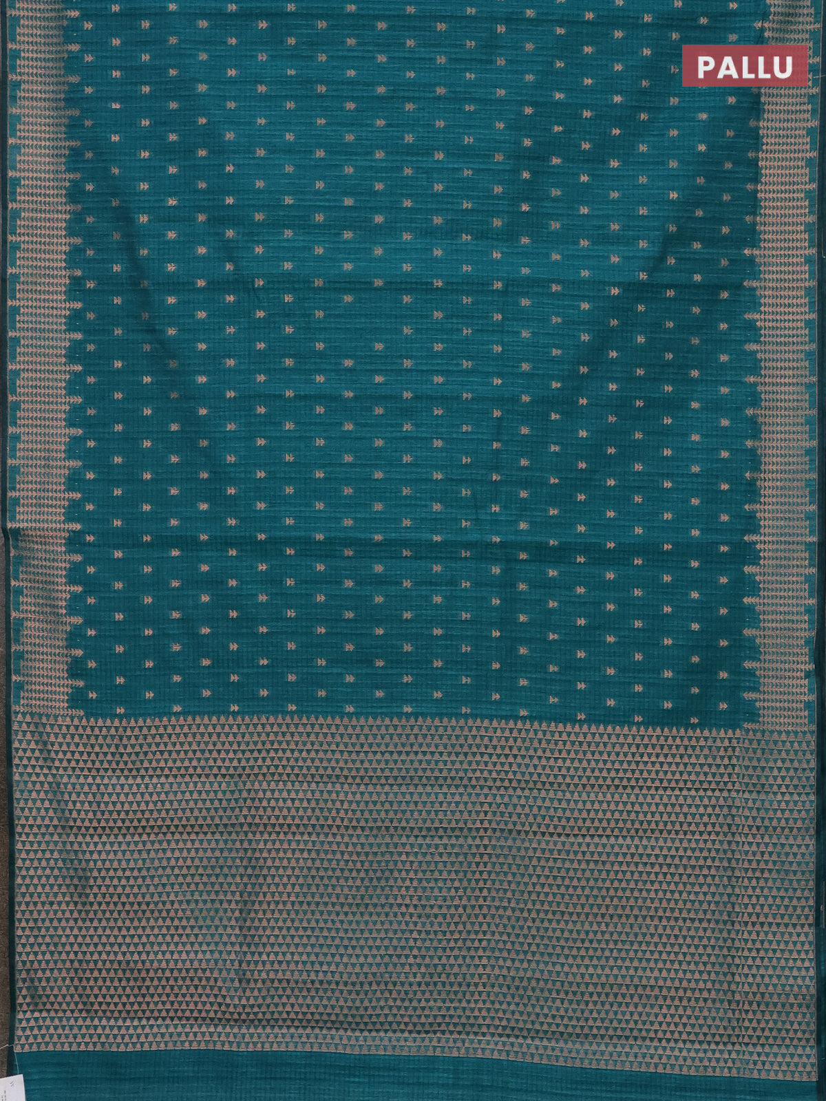 Banarasi semi matka saree teal green with allover zari woven geometric buttas and zari woven border