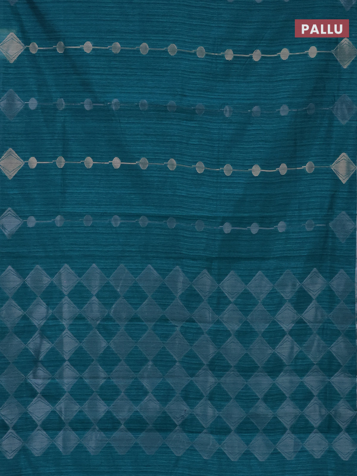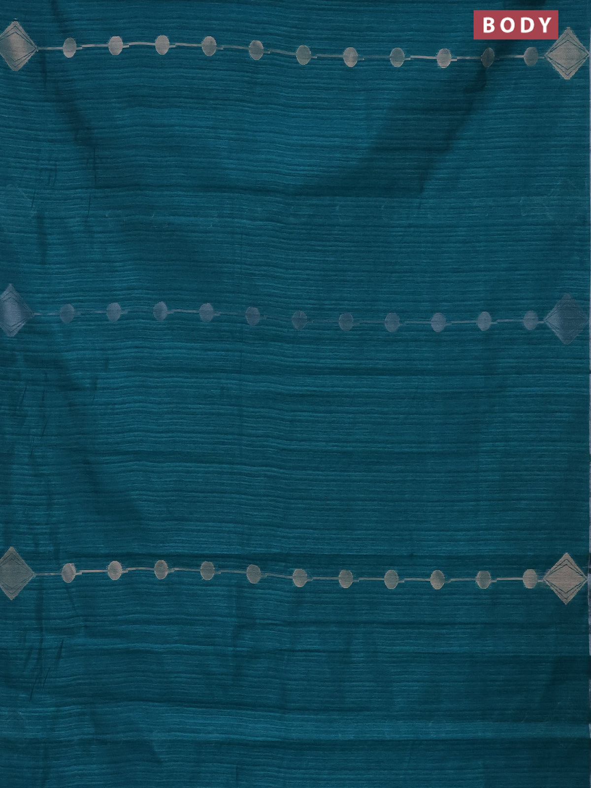 Banarasi semi matka saree teal green with silver & gold geometric weaves and zari woven piping border