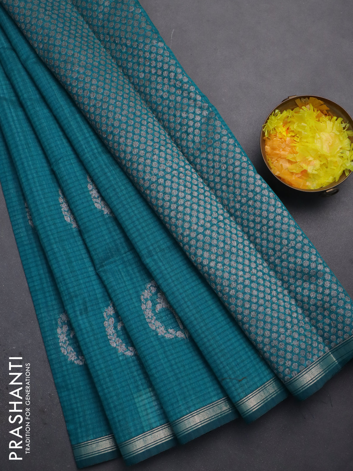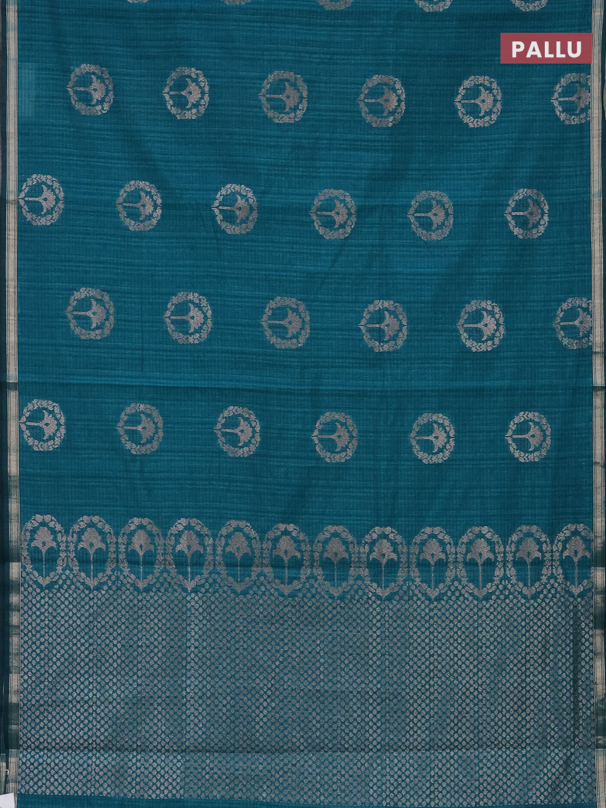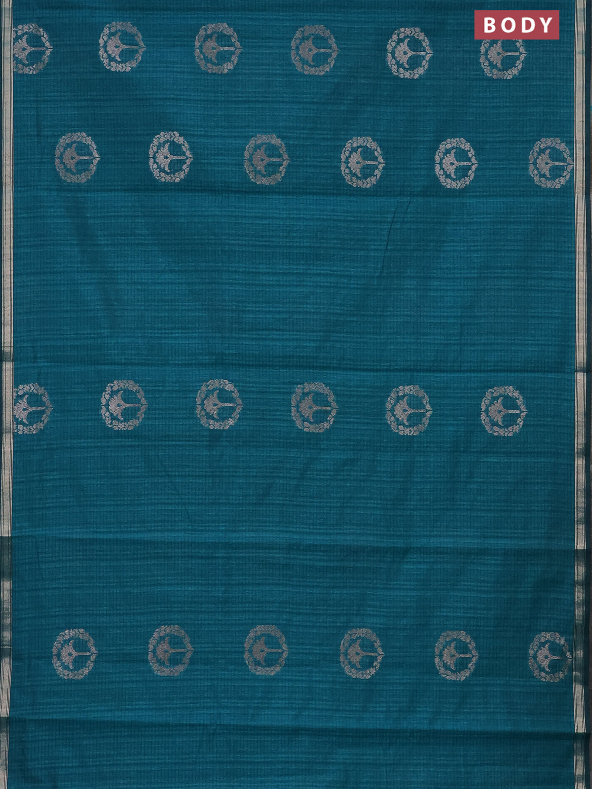 Banarasi semi matka saree teal green with silver & gold zari woven buttas and zari woven piping border