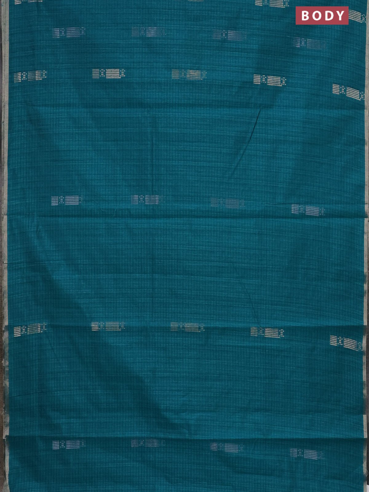 Banarasi semi matka saree teal green with silver & gold zari woven buttas and zari woven piping border