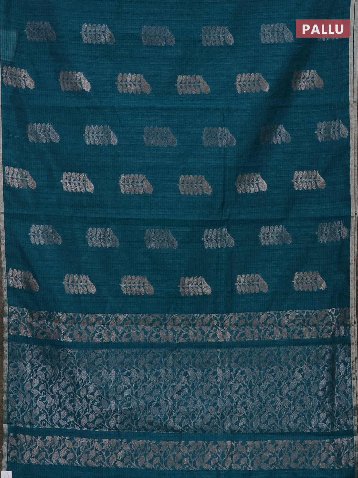 Banarasi semi matka saree teal green with thread & silver zari woven buttas and zari woven piping border