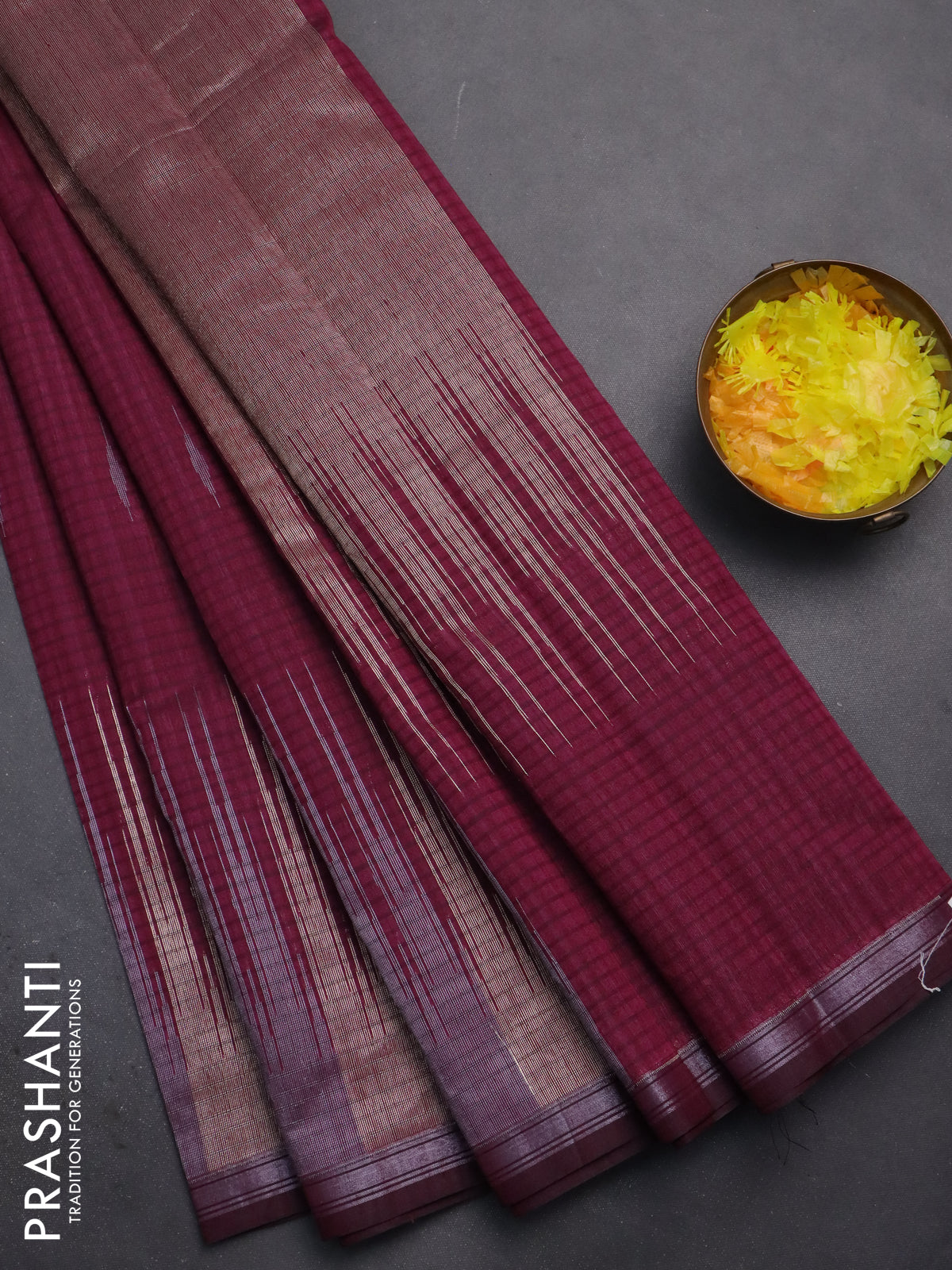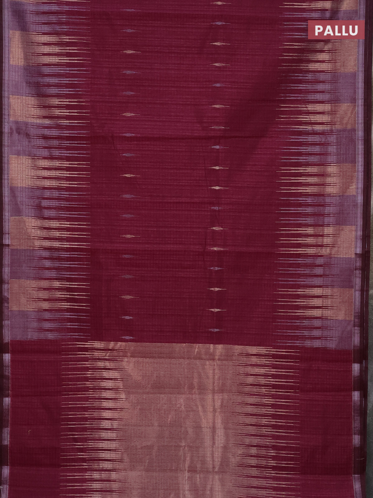 Banarasi semi matka saree wine shade with silver & gold zari woven buttas and temple design zari woven border