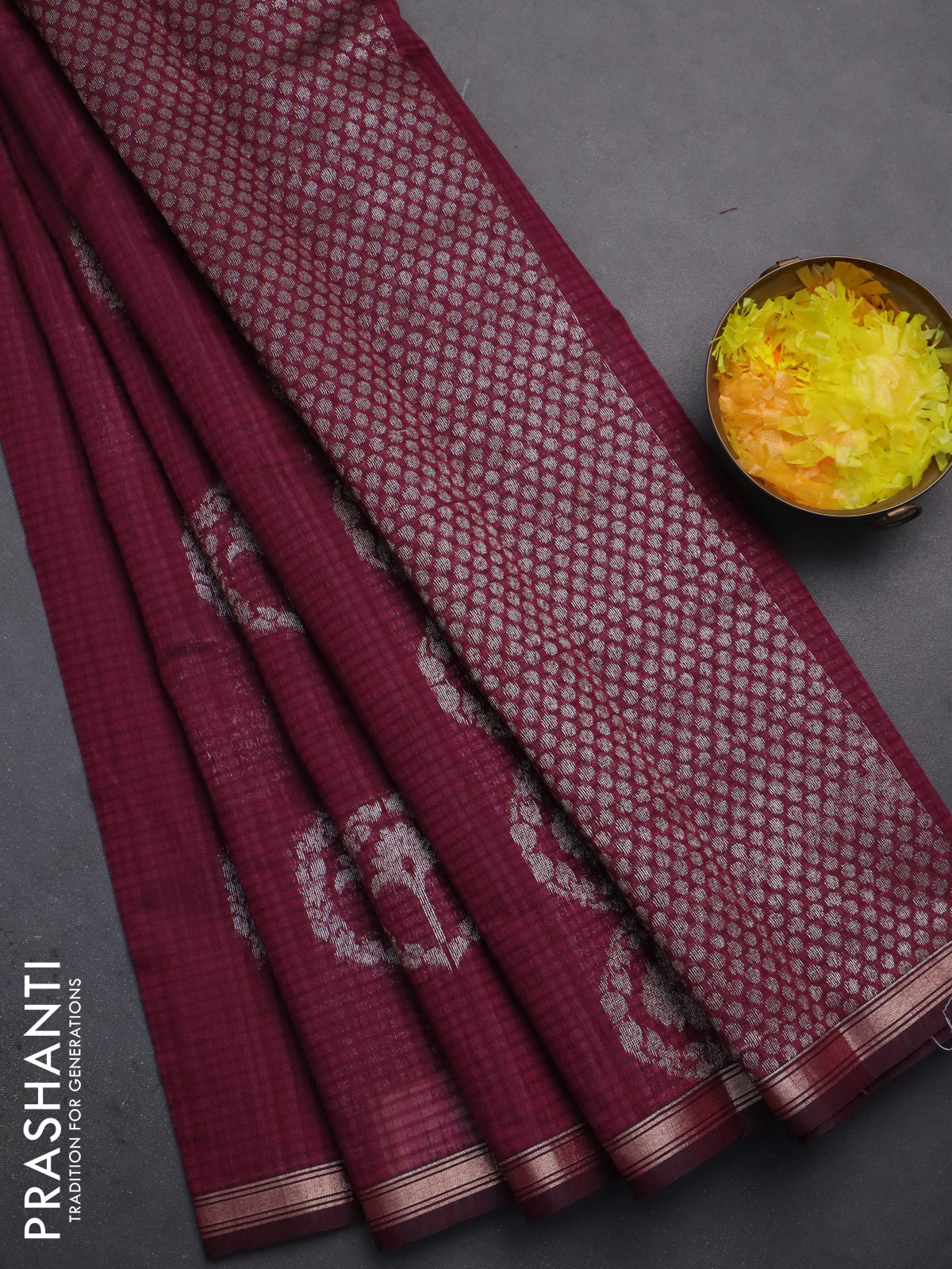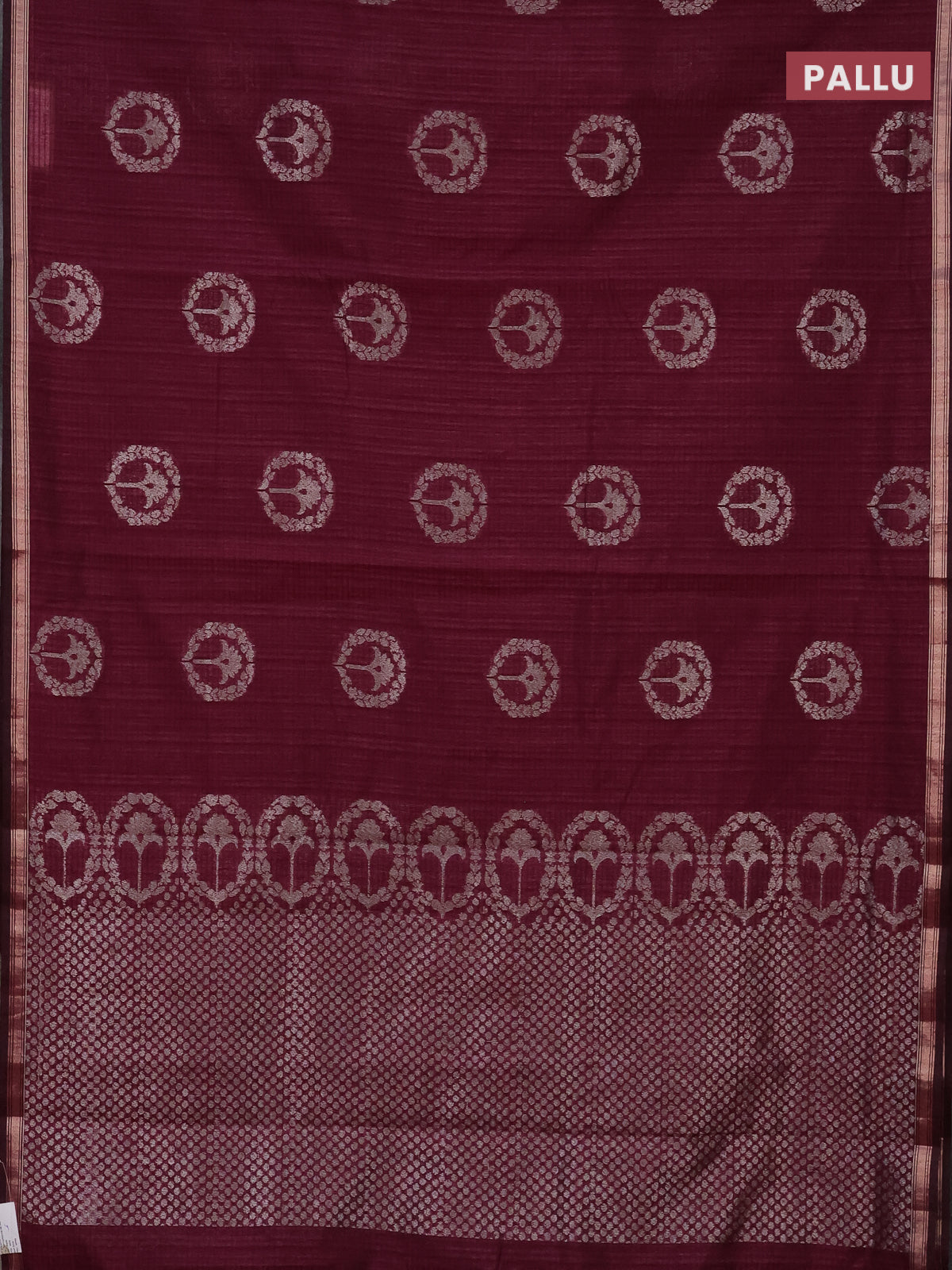 Banarasi semi matka saree wine shade with silver & gold zari woven buttas and zari woven piping border