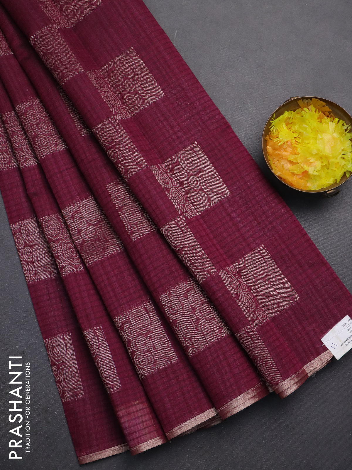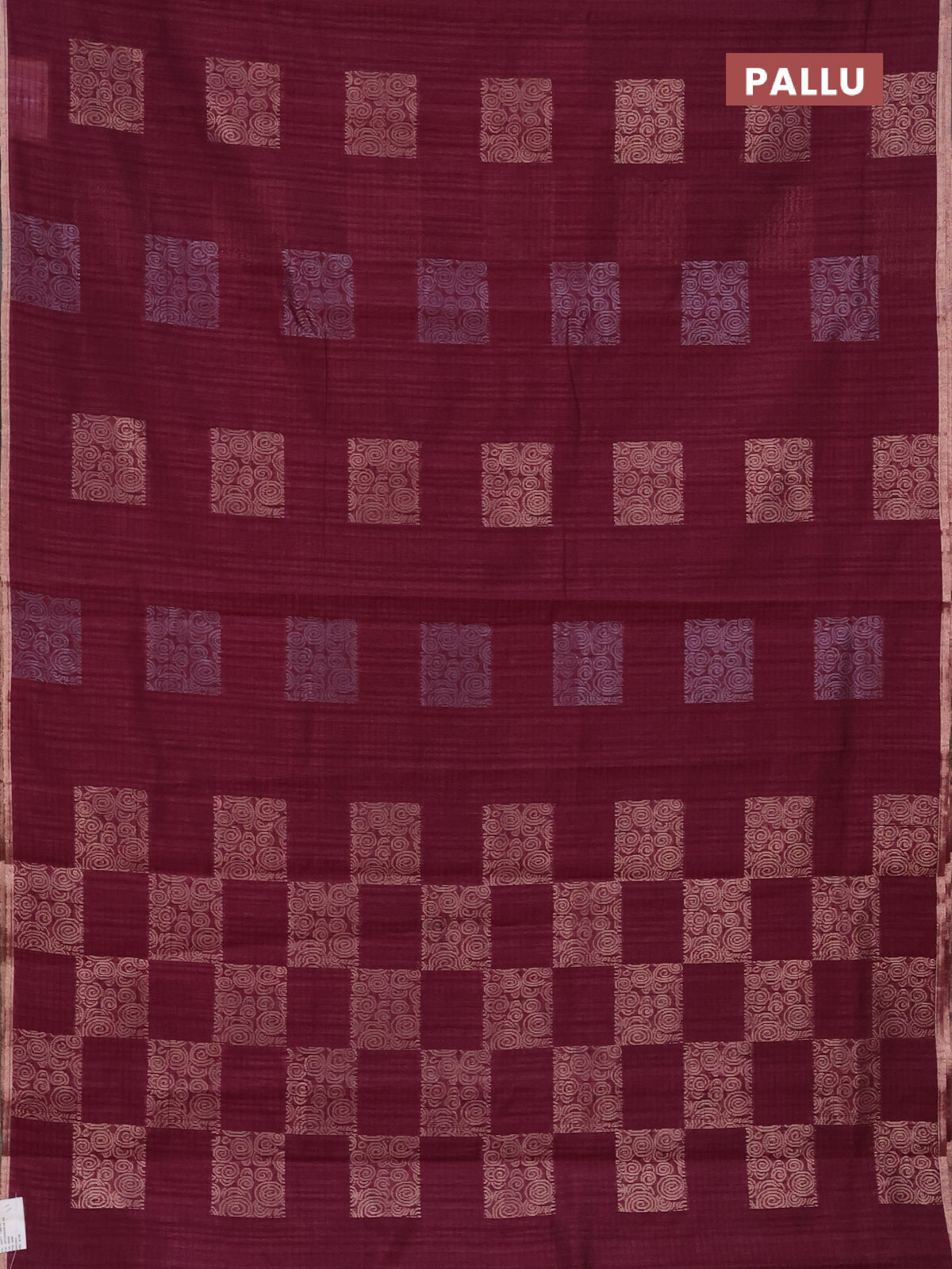 Banarasi semi matka saree wine shade with silver & gold zari woven buttas and zari woven piping border