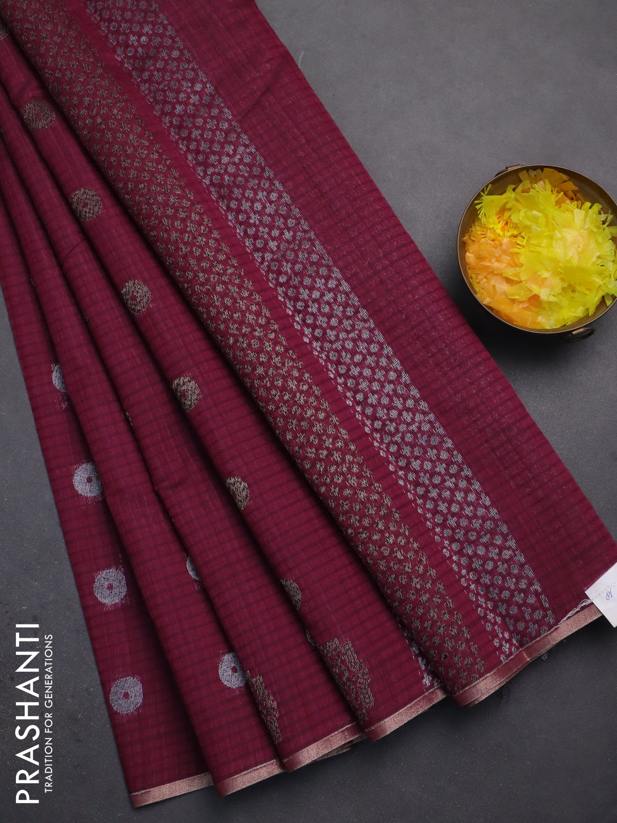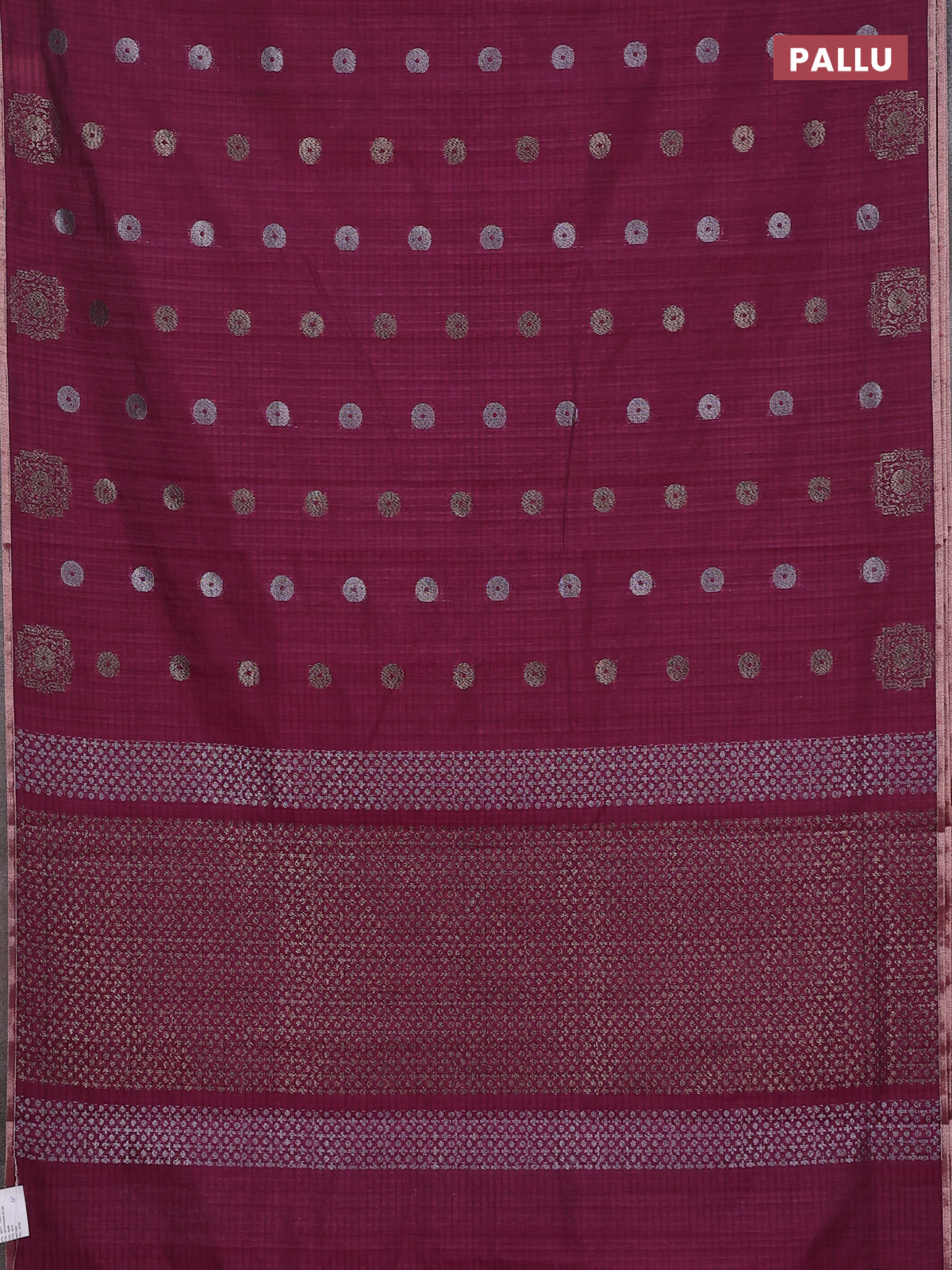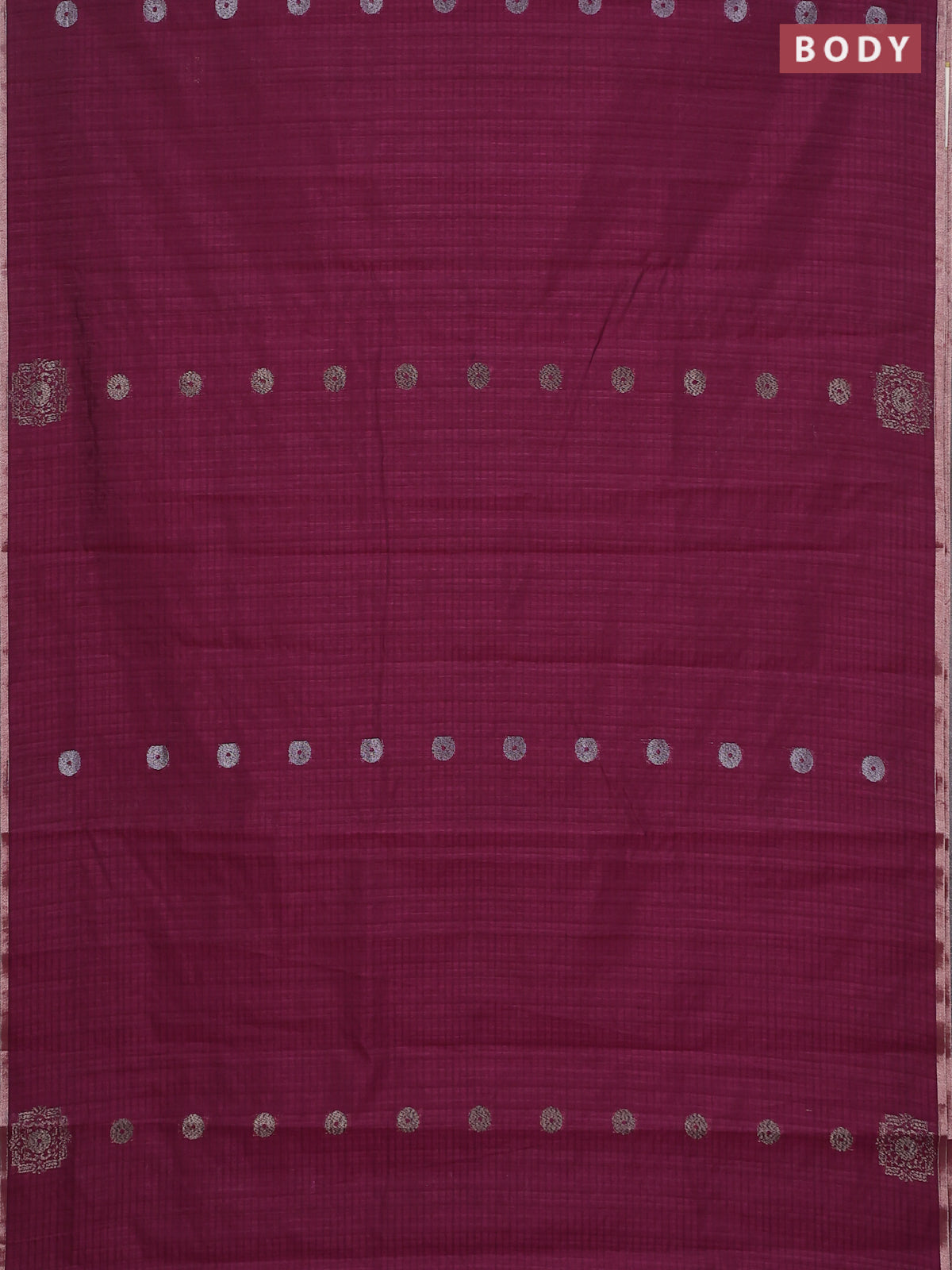 Banarasi semi matka saree wine shade with silver & gold zari woven buttas and zari woven piping border