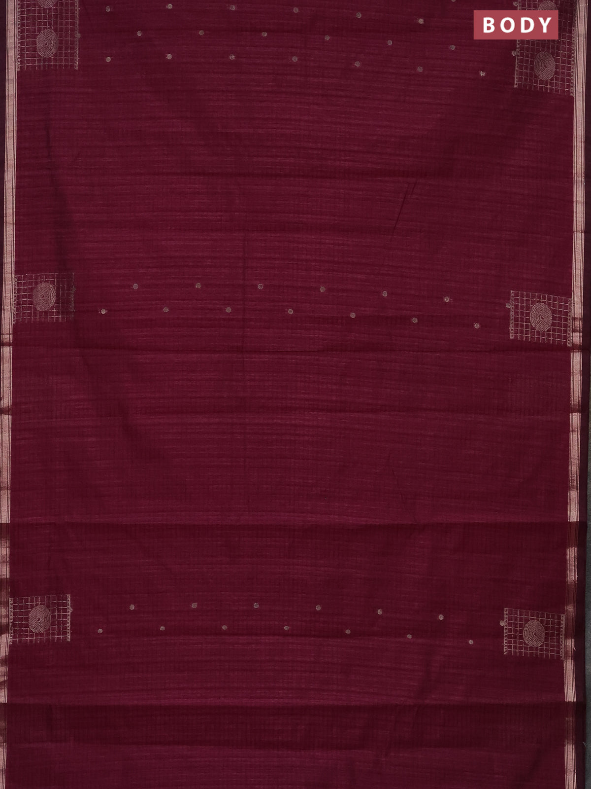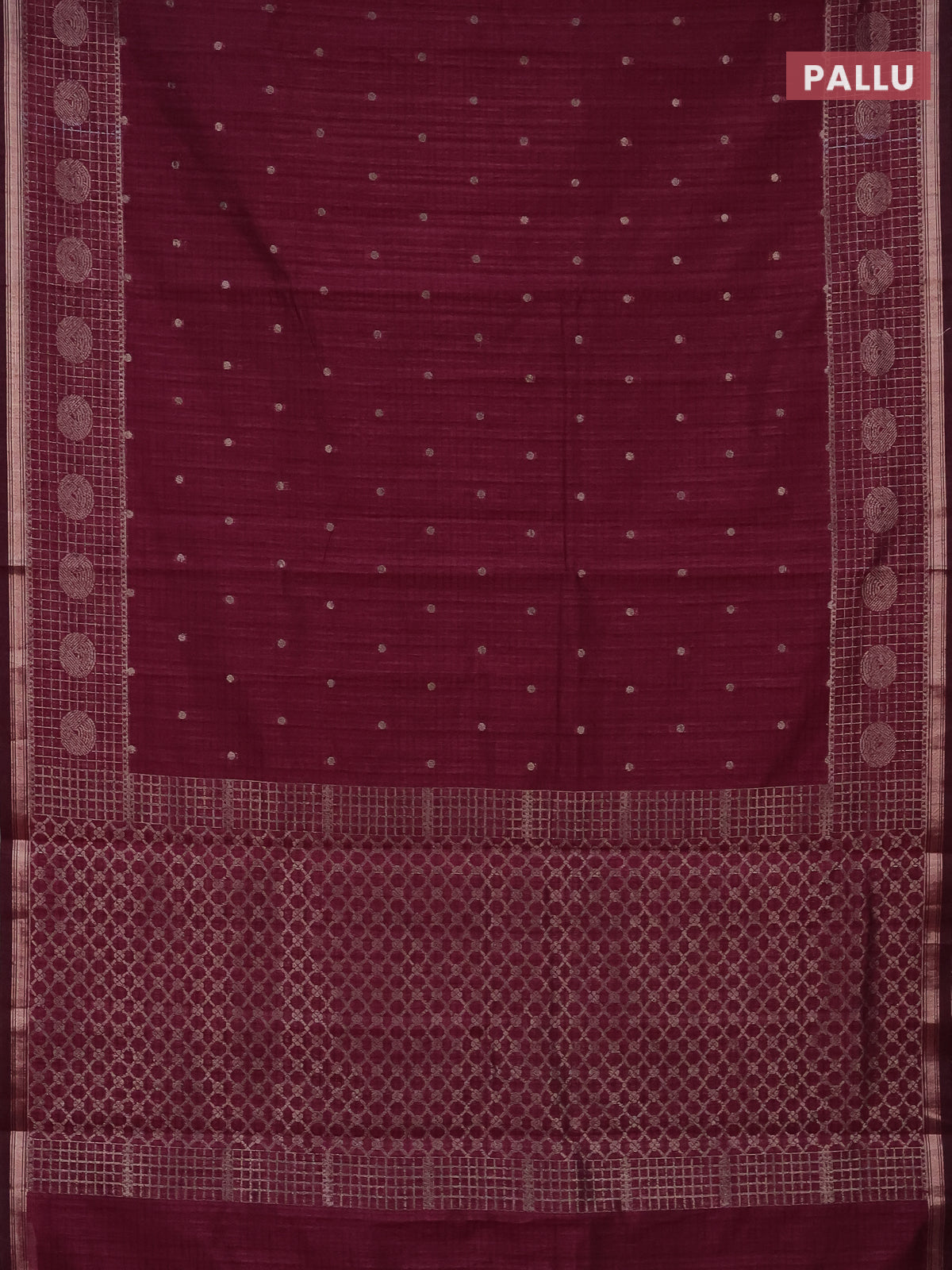 Banarasi semi matka saree wine shade with thread & zari woven buttas and woven border